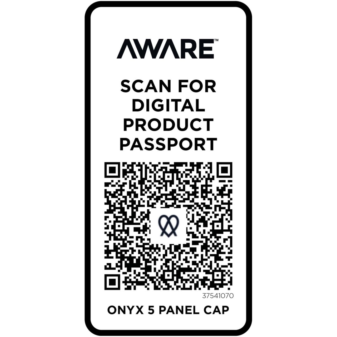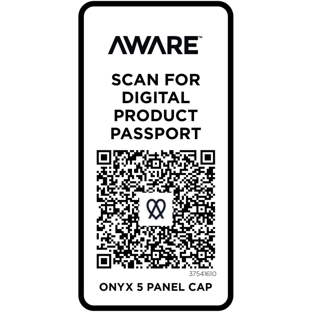 Šiltovka Onyx s 5 panelmi je vyrobená zo 70% recyklovanej bavlny a 30% recyklovaného polyesteru. Je navrhnutá na pohodlné nosenie s obvodom hlavy 58 cm a zapínanie na kovovú pracku umožňuje jednoduché a bezpečné nastavenie. Čiapka obsahuje recyklované vlákna Cyclo®, kde používajú vopred vytriedený odpad, ktorý určuje farbu priadze. Tieto vlákna nielenže znižujú dopyt po pôvodných zdrojoch, ale tiež prejavujú záväzok k cirkulárnemu životu, stelesňujú podstatu znižovania odpadu a podporujú systém s uzavretým okruhom. Každá čiapka je tiež dodávaná s indikátorom Aware™. Táto inovatívna funkcia umožňuje používateľom sledovať pôvod a cestu ich položky prostredníctvom QR kódu, čím zvyšuje transparentnosť v dodávateľskom reťazci a podporuje pevnejšie prepojenie medzi produktom a jeho výrobným procesom.