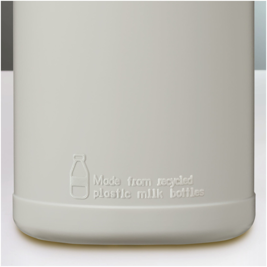 Táto jednostenná športová fľaša premieňa plastové fľaše na mlieko na jedno použitie na niečo, čo možno používať znova a znova. Fľaša sa vyznačuje viečkom odolným proti vyliatiu s odklápacím uzáverom a objemom 500 ml. Vzhľadom na povahu recyklovaného plastu sa farebné odtiene môžu mierne líšiť a môžu sa na nich vyskytovať farebné škvrny. Vyrobené v Spojenom kráľovstve.