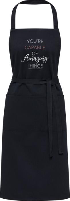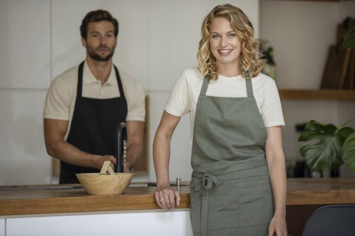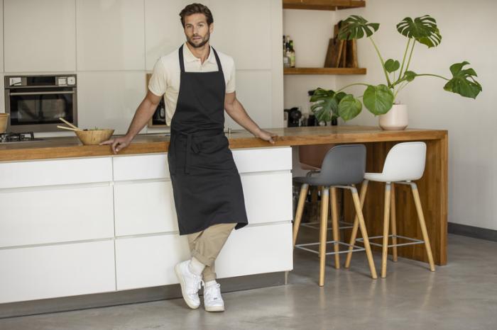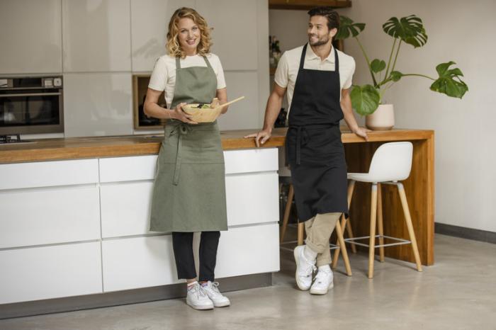 Zástera Shara je vyrobená zo 70% recyklovanej bavlny s gramážou 240 g/m2 a 30% recyklovaného polyesteru, vďaka čomu je silná a pevná, a pohodlná na nosenie. Má 2 priľahlé vrecká (každé 22 × 20 cm) a pásky na zaviazanie o dĺžke 1 m. Zástera obsahuje recyklované vlákna Cyclo®, na ktoré sa používa vopred vytriedený odpad, ktorý určuje farbu priadze. Tieto vlákna nielenže znižujú dopyt po pôvodných zdrojoch, ale tiež prejavujú záväzok k cirkulárnemu životu, stelesňujú podstatu znižovania odpadu a podporujú systém s uzavretým reťazcom. Každá zástera je tiež dodávaná s indikátorom Aware™. Táto inovatívna funkcia umožňuje používateľom sledovať pôvod a cestu ich položky prostredníctvom QR kódu, čím zvyšuje transparentnosť v dodávateľskom reťazci a podporuje pevnejšie prepojenie medzi produktom a jeho výrobným procesom.