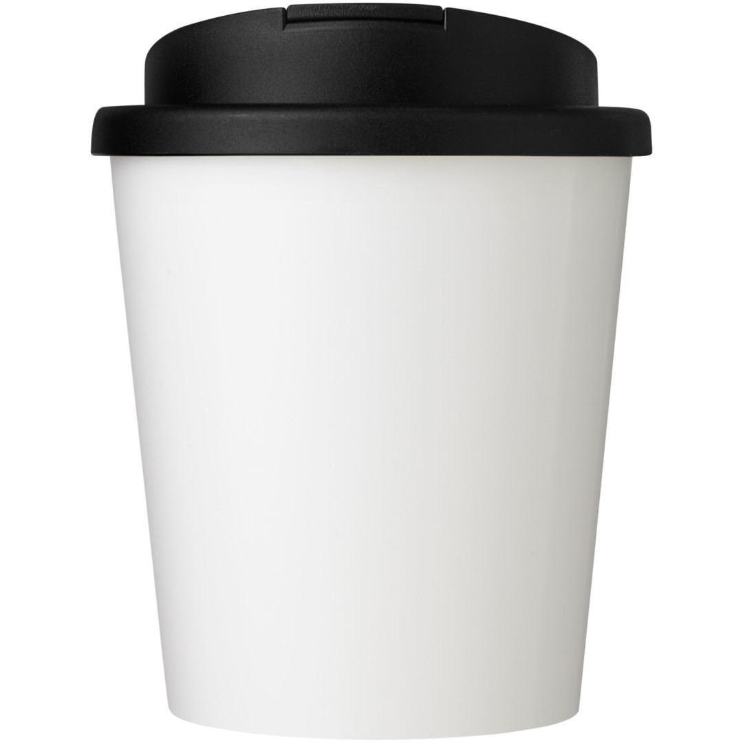 Dvojplášťový hrnček s tepelnou izoláciou, otočným viečkom odolným proti rozliatiu a plnofarebným dizajnom nalisovaným na výrobok. Hrnček je vyrobený z celkom 65% recyklovaného materiálu (recyklovaný hrnček a čierne vnútro) a má štandardné plastové viečko. Hrnček je plne recyklovateľný a vhodný do umývačky a mikrovlnnej rúry. Objemová kapacita: 250 ml. Neobsahuje BPA. Obal je možné kompostovať v domácom kompostére. Vyrobené v Spojenom kráľovstve.