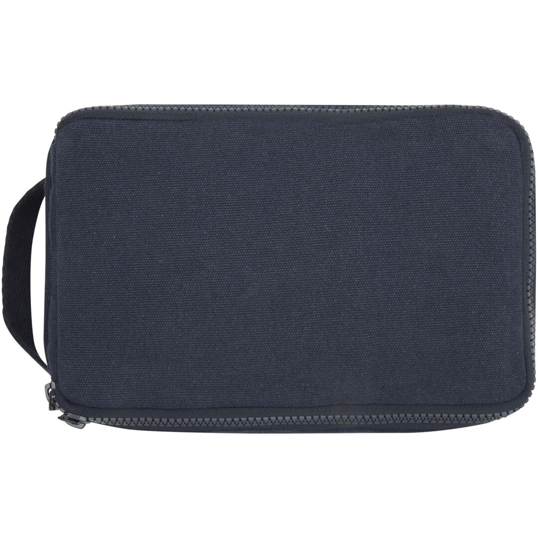 Organizér na toaletné potreby vyrobený z 500 g/m² recyklovanej bavlny a recyklovaného polyesteru s priestranným hlavným oddielom, bezpečným zapínaním na zips a niekoľkými vnútornými vreckami, vďaka čomu sa ideálne hodí na ukladanie nevyhnutných toaletných potrieb. Je navrhnutý univerzálne, a hodí sa tak na usporiadanie malých predmetov, ako sú ponožky alebo nabíjačky, aby ste mali vo svojej batožine poriadok. Taška obsahuje recyklované vlákna Cyclo®, ktoré používajú vopred vytriedený odpad určujúci farbu priadze. Tieto vlákna nielenže znižujú dopyt po pôvodných zdrojoch, ale tiež prejavujú záväzok k cirkulárnemu životu, stelesňujú podstatu znižovania odpadu a podporujú systém s uzavretou slučkou. Každá taška je tiež dodávaná s indikátorom Aware™. Táto inovatívna funkcia umožňuje používateľom sledovať pôvod a cestu ich položky prostredníctvom QR kódu, čím zvyšuje transparentnosť v dodávateľskom reťazci a podporuje pevnejšie prepojenie medzi produktom a jeho výrobným procesom.