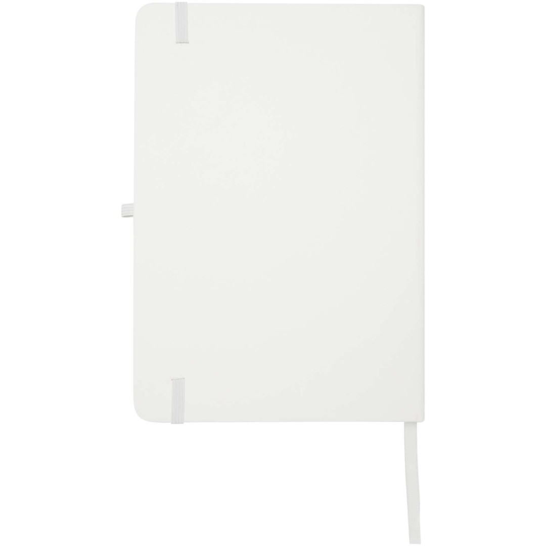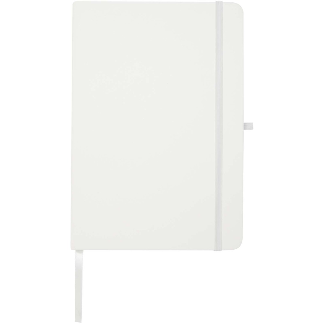 Zápisník Teak A5 s pevnou obálkou z lepenky a zaoblenými rohmi je nielen skvelým pomocníkom v kancelárii, ale aj ideálnou príležitosťou na propagáciu vašej značky. Zápisník má 96 linkovaných listov papiera s gramážou 70 g/m2 a obálkou mäkkou na dotyk. Dodáva sa s pútkom na pero, elastickým uzáverom a záložkou.