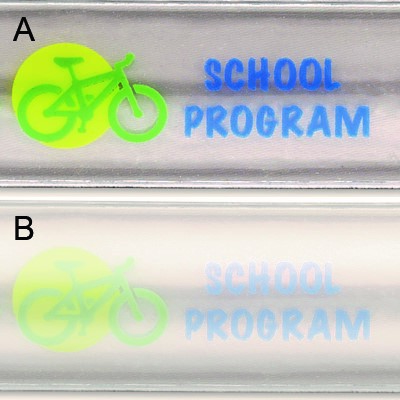Reflexná kľúčenka vlastného tvaru (nie na bezpečnostné použitie) s farebným PVC vo vnútri a striebornou alebo žltou reflexnou fóliou na vonkajšej strane. Max. rozmer: 6x6cm. V cene je 1-farebná potlač. Zvoľte tlač loga na vonkajšiu stranu položky pre lepšiu viditeľnosť vášho loga (A), prípadne môžete tlačiť na vnútornú stranu pre väčšiu reflexnú plochu (B).