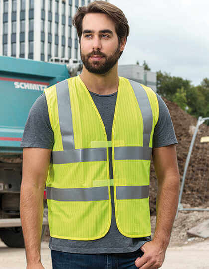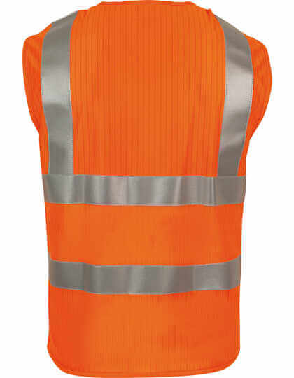 Vesta Korntex® zodpovedajúca mnohým národným normám | Certifikácia podľa noriem STN EN ISO 20471:2013 + A1:2016, STN EN ISO 14116 Index 1/12H/40, STN EN1149-5. Oranžová spĺňa požiadavky GO/RT 3279 | Výrobca zaručuje reflexné vlastnosti v súlade s normami EN pre 25 praní pri 40 °C. | Dva vodorovné reflexné pásy | Dva reflexné prúžky cez rameno | Zapínanie suchým zipsom | Informácie výrobcu dostupné vo všetkých oficiálnych jazykoch EÚ a tiež v ruštine a čínskom jazyku | S čiarovým kódom EAN | Jednotlivo balené v polyetylénových vreckách