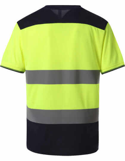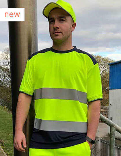Moderné reflexné tričko | Neformálne pohodlie | priedušné | Rýchloschnúci materiál | Jemná tkanina s drobným vzorom príjemný na kožu | Uvoľnený strih | Tričko s krátkym rukávom | Kontrastná námornícka modrá na ramenách, golieri, manžetách a lemoch | Zodpovedá EN ISO 20471 trieda 2 | Oranžová / námornícka modrá majú tiež certifikáciu RIS-3279-TOM pre použitie na železnici | Veľká pružnosť a streč, ktorý drží tvar | Dva mimoriadne široké retro reflexné pásky okolo tela | Bočné rozparky so zosilnenými stehmi | Bez štítku | 25 max. Prací cyklus
