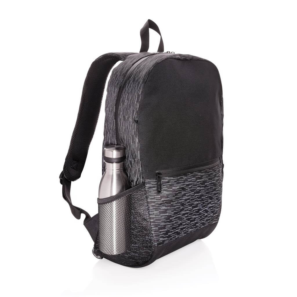 Buďte zaručene vidieť aj v tme vďaka reflexnému batohu vyrobeného zo 100% recyklovaných materiálov s vystopovateľnou zložkou AWARE™. AWARE™ využíva moderné možnosti skenovania a technológie blockchain, vďaka čomu je možné s istotou garantovať recyklovaný pôvod použitého materiálu a reálnu úsporu vody. Na výrobu tohto produktu bolo využitých 16 PET fliaš a bolo ušetrených 8 litrov vody. Unikátna celoplošná reflexná potlač, hlavný oddiel s vlastným priestorom na až 15,6 "notebook, predné vrecko na zips a 2 sieťové vrecká. Bez PVC.