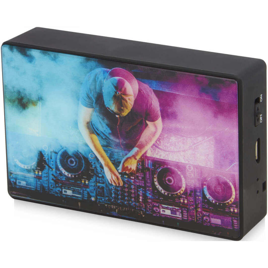 3W bezdrôtový reproduktor obdĺžnikového tvaru s krytom z tvrdeného skla. Stabilné pripojenie s Bluetooth® 5.0. 400mAh batéria zaisťuje až 4 hodiny prehrávania pri maximálnej hlasitosti. Dobitie trvá 1 hodinu. Prevádzkový dosah až 10 metrov. Balené v prémiovej darčekovej krabičke.