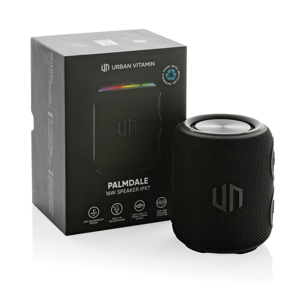 Vodeodolný IPX7 bezdrôtový reproduktor s robustným výkonom 16W. Praktické pútko a odolné prevedenie. Možnosť spárovania dvoch reproduktorov pre stereo počúvanie. Počúvanie po dobu až 10 hodín na jedno plné nabitie. Dvojitý subwoofer pre kvalitnejší basový zážitok. Vyrobené z RCS recyklovaného ABS a PET plastu. RCS (Recycled Claim Standard) je globálny štandard, ktorý umožňuje overiť použitie recyklovaného materiálu v produkte naprieč celým dodávateľským reťazcom. Celkový podiel recyklátu podľa váhy produktu: 35 %. Produkt aj príslušenstvo bez PVC. Balené v darčekovom balení Urban Vitamin s minimálnym obsahom plastov. 1 batérií typu 18650 súčasťou balenia.