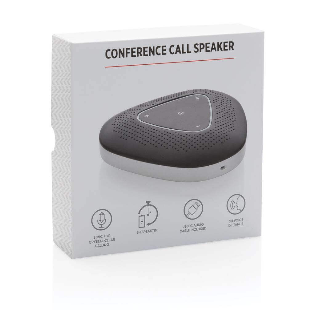 Bezdrôtový reproduktor s dvoma vysoko kvalitnými 360 mikrofónmi pre ideálny prenos zvuku pri videohovoroch na vzdialenosť až 3m. Stabilné bezdrôtové pripojenie zaisťuje BT 5.1. Batéria s kapacitou 1200 mAh umožňuje nepretržité používanie po dobu až 6h na jedno nabitie. Kompatibilný so všetkými najpoužívanejšími aplikáciami pre videohovory. Tlačidlá na stlmenie a ovládanie hlasitosti. Vrátane 1m dlhého nabíjacieho USB C kábla.