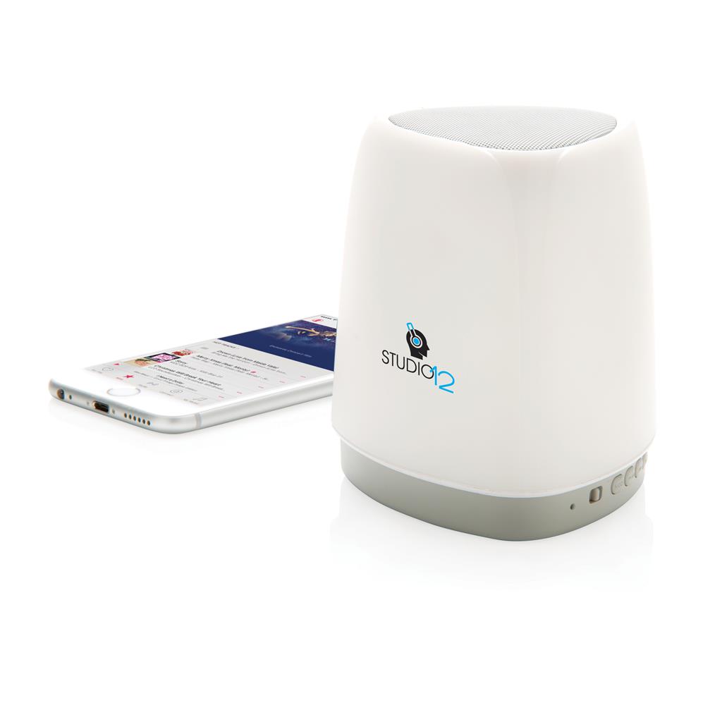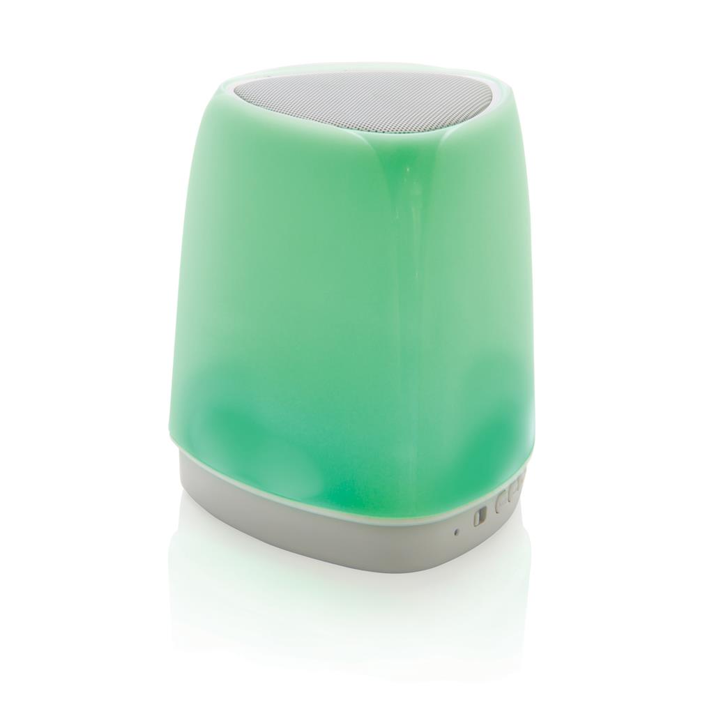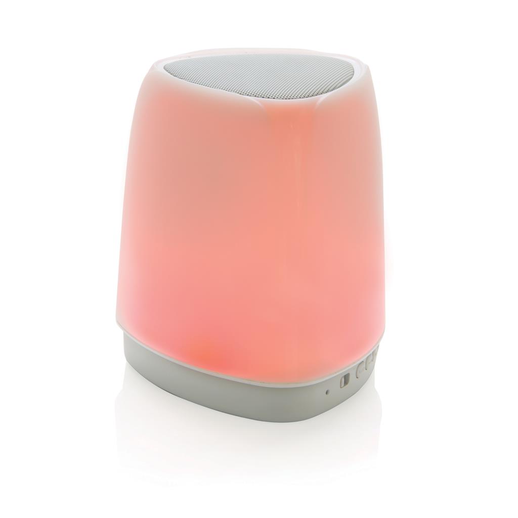 3W bezdrôtový reproduktor s LED svetlom meniacim farbu. Ak chcete zmeniť farbu svetla, stačí kliknúť na hornú stranu. Reproduktor možno položiť na stôl alebo ho pomocou háčiku kamkoľvek zavesiť. Skvelý pre vonkajšie večery s priateľmi alebo večierky. Kapacita batérie 1 500 mAh umožňuje prehrávať hudbu po dobu až 5 hodin. Prevádzková vzdialenosť až 10 metrov. S modulom BT 2.1. 1 batéria typu Li-ion súčasťou balenia.