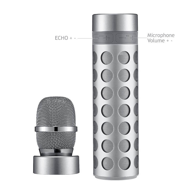 Užite si maximálnu zábavu pri karaoke s praktickým Bluetooth reproduktorom s mikrofónom. Štýlový vzhľad dodá celému vystúpenému profesionálnemu nádychu. Bezdrôtový reproduktor s mikrofónom prepojíte so svojim mobilným zariadením pomocou technológie Bluetooth 4.1 s dosahom približne 10 metrov. Používať môžete aj samotný reproduktor po odpojení mikrofónu. Súčasťou reproduktora je slot pre micro SD / TF kartu. Kapacita batérie je 2000 mAh, a keď sa vám vybije, využijete na nabitie micro USB. Kvalitné kovové spracovanie v rôznych farbách dodá ten správny nádych každej párty aj pokojnému počúvaniu muziky.