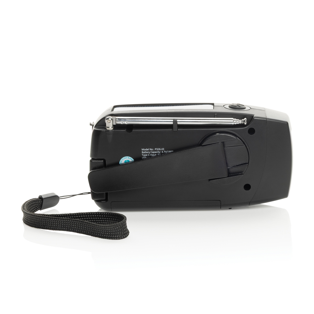 Buďte pripravení na akúkoľvek situáciu s RescueWave, všestranným núdzovým rádiom navrhnutým tak, aby vás udržalo v spojení a nabitých. Ponúka AM/FM rádio, solárny panel, integrované 1W svietidlo, USB výstup a USB-C vstup. S integrovanou batériou s kapacitou 1800mAh môže RescueWave nabiť váš telefón a poskytnúť potrebnú energiu. Ručný pohon poskytuje spoľahlivú funkčnosť – iba 1 minúta točenia umožňuje 5 minút rádiového vysielania alebo 30 minút svietenia. Rádio vydrží až 15 hodín vysielania alebo 8 hodín svietenia na plné nabitie. Vyrobené z recyklovaných materiálov certifikovaných podľa RCS (Recycled Claim Standard). Celkový podiel recyklovaného obsahu: 38 % podľa celkovej hmotnosti produktu. Produkt aj príslušenstvo neobsahujú PVC a sú balené v FSC® obale.