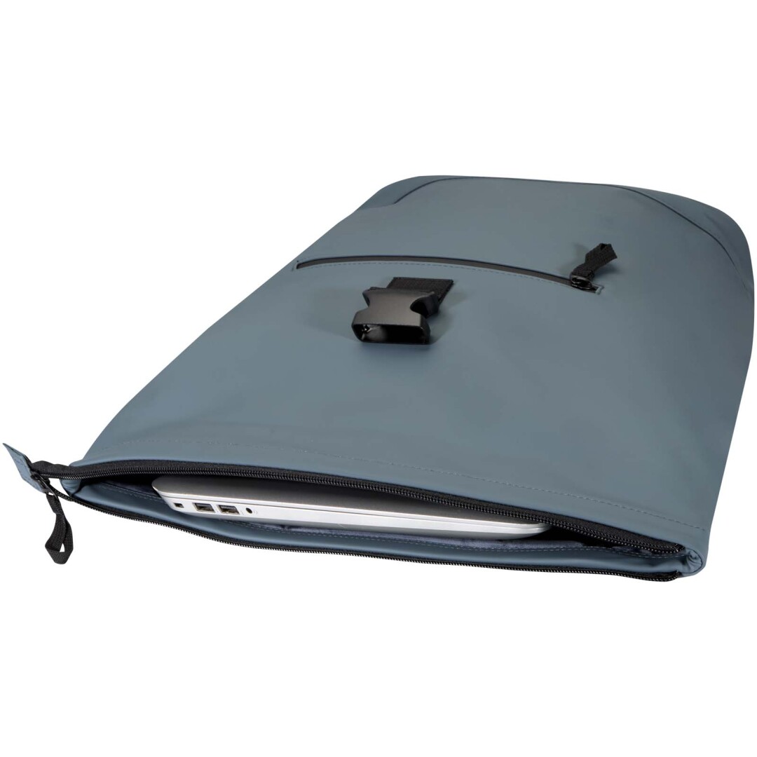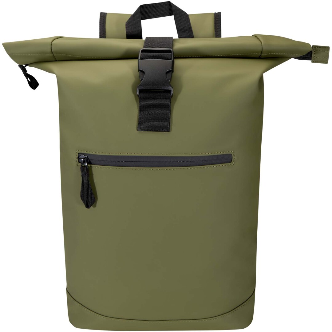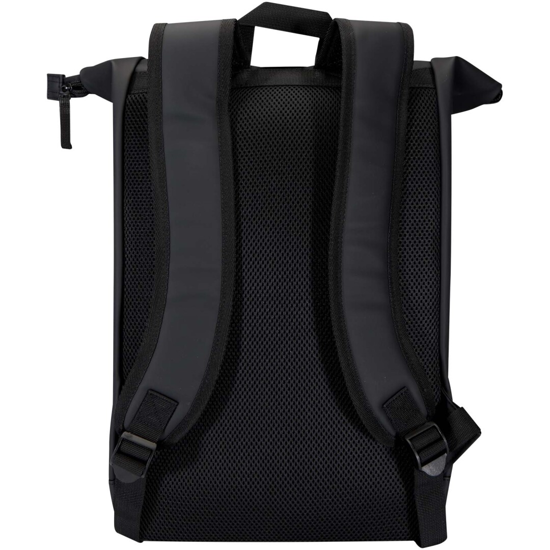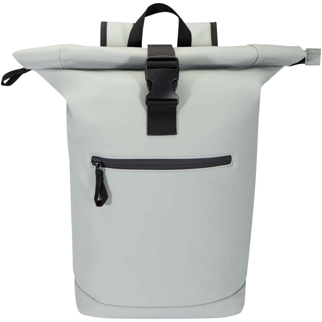 Tento batoh s rolovacou strechou je vyrobený z prvotriednej recyklovanej PU kože s farebne zladenou podšívkou z RPET a spája moderný štýl s dlhou životnosťou. Vodeodolná povrchová úprava chráni vaše nevyhnutné predmety a rolovacie zapínanie ponúka flexibilný úložný priestor, ideálny na dochádzanie, cestovanie alebo do posilňovne. Vnútri je polstrovaná priehradka na notebooky do uhlopriečky 15,6″ a ďalšie vrecko na zips vám umožní usporiadať si techniku a každodenné nevyhnutnosti. Na vonkajšej strane zaisťuje bezpečný prístup predné vrecko na zips s nepremokavým zipsom, zatiaľ čo polstrované, nastaviteľné ramenné popruhy a priedušný chrbtový panel zaisťujú celodenné pohodlie.