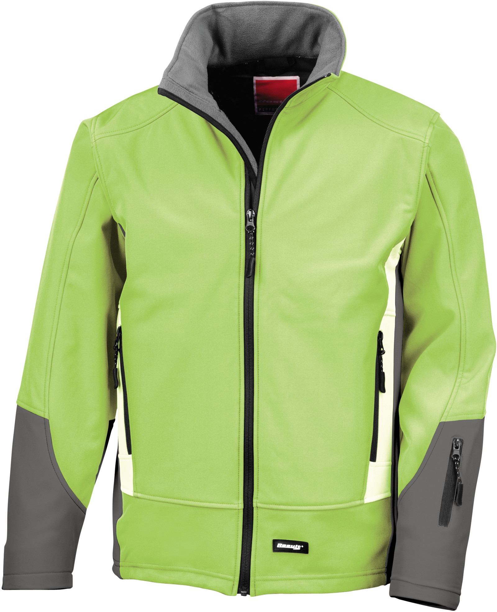 320g / m², 93% polyester, 7% elastan so stojačikom má 2 bočné vrecká na zips, vrecko na rukáve, YKK zips a vnútorné vrecko na