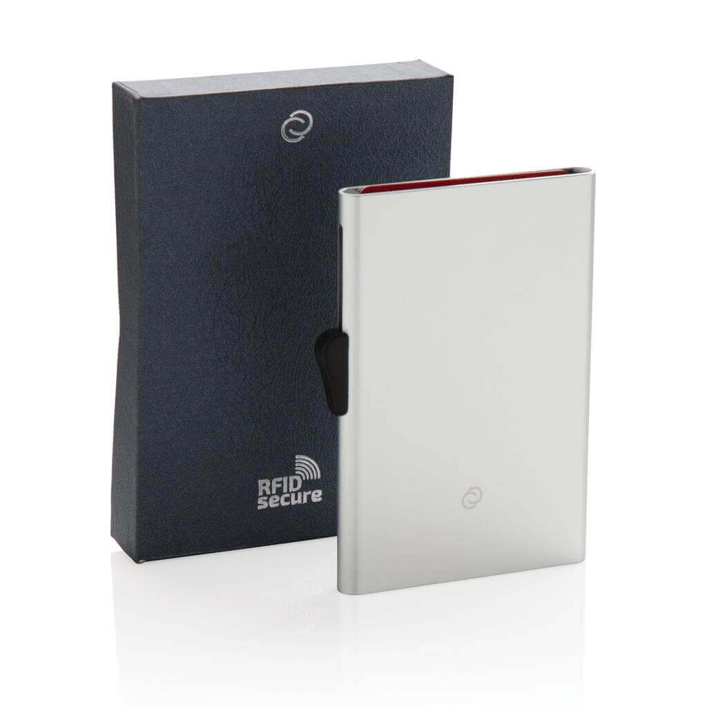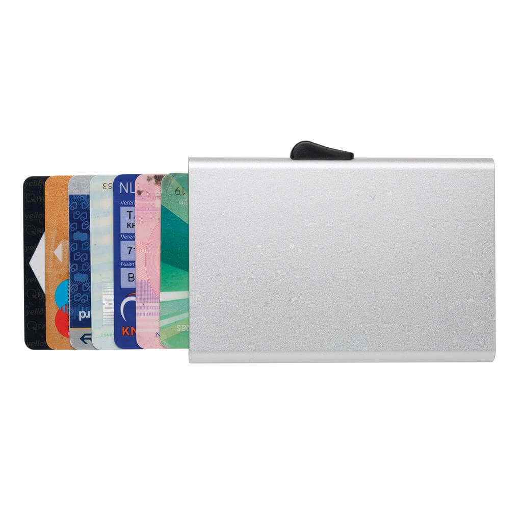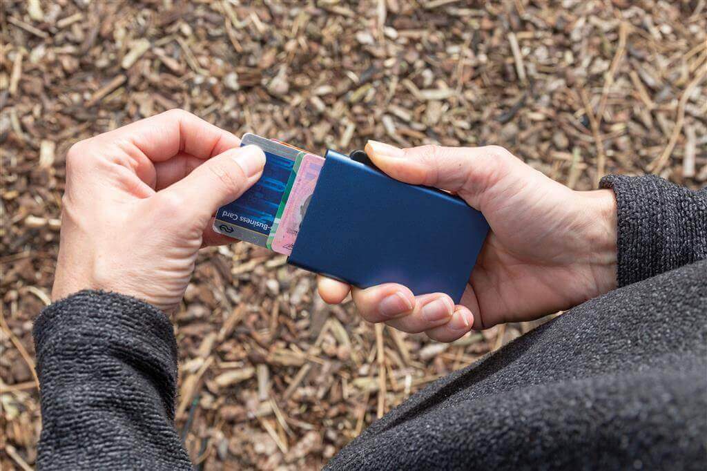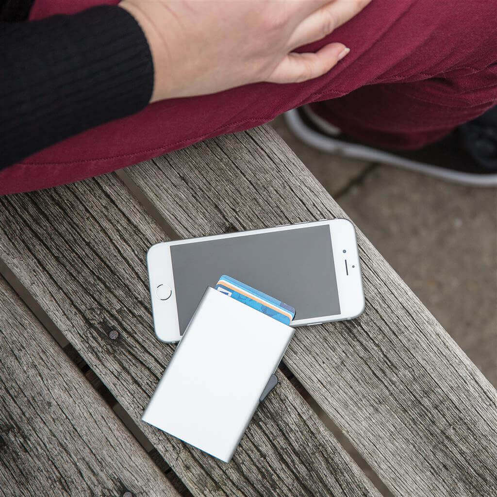Toto pevné hliníkové puzdro chráni vaše najdôležitejšie karty pred elektronickými vreckovými krádežami. Už žiadne ďalšie zlomené či ohnuté karty. Pojme až 7 kariet alebo 5 embosovaných kariet. Ľahko ovládateľný jazdec karty postupne vytlačí hore.