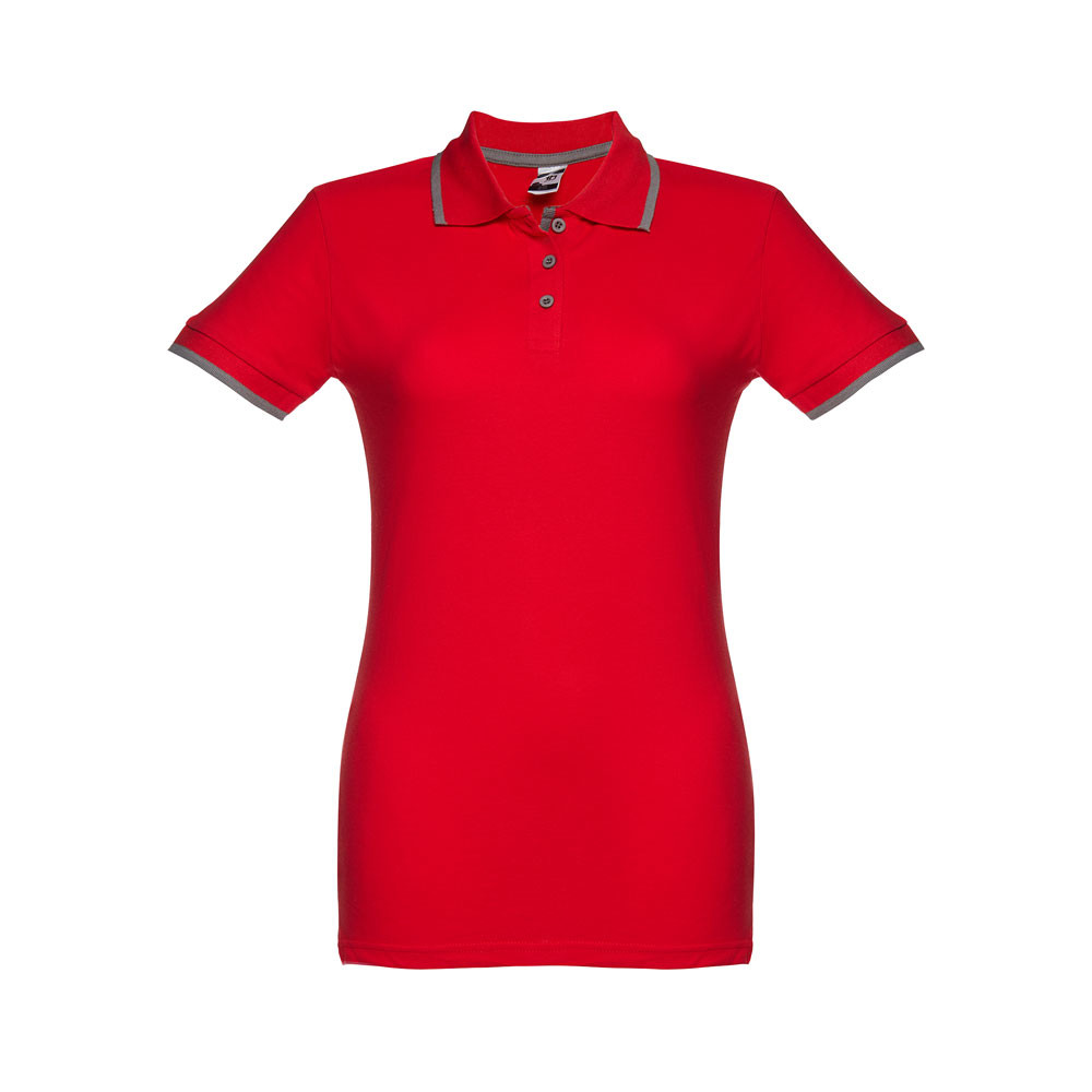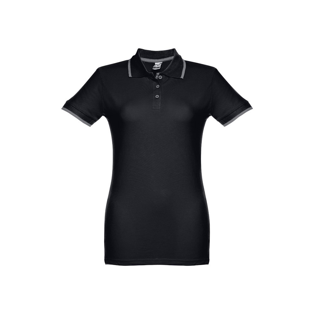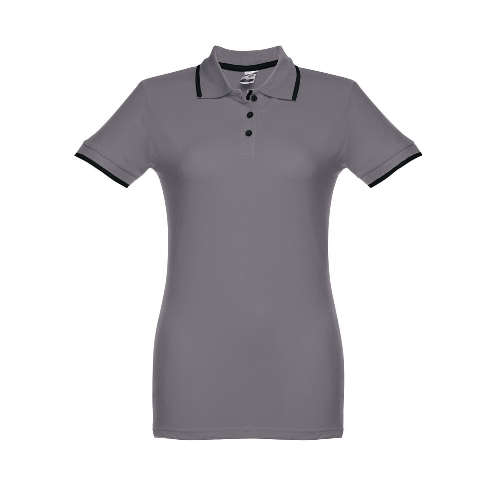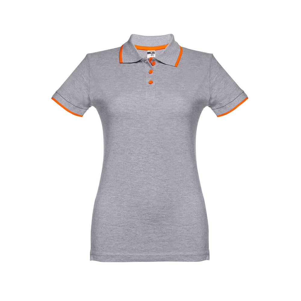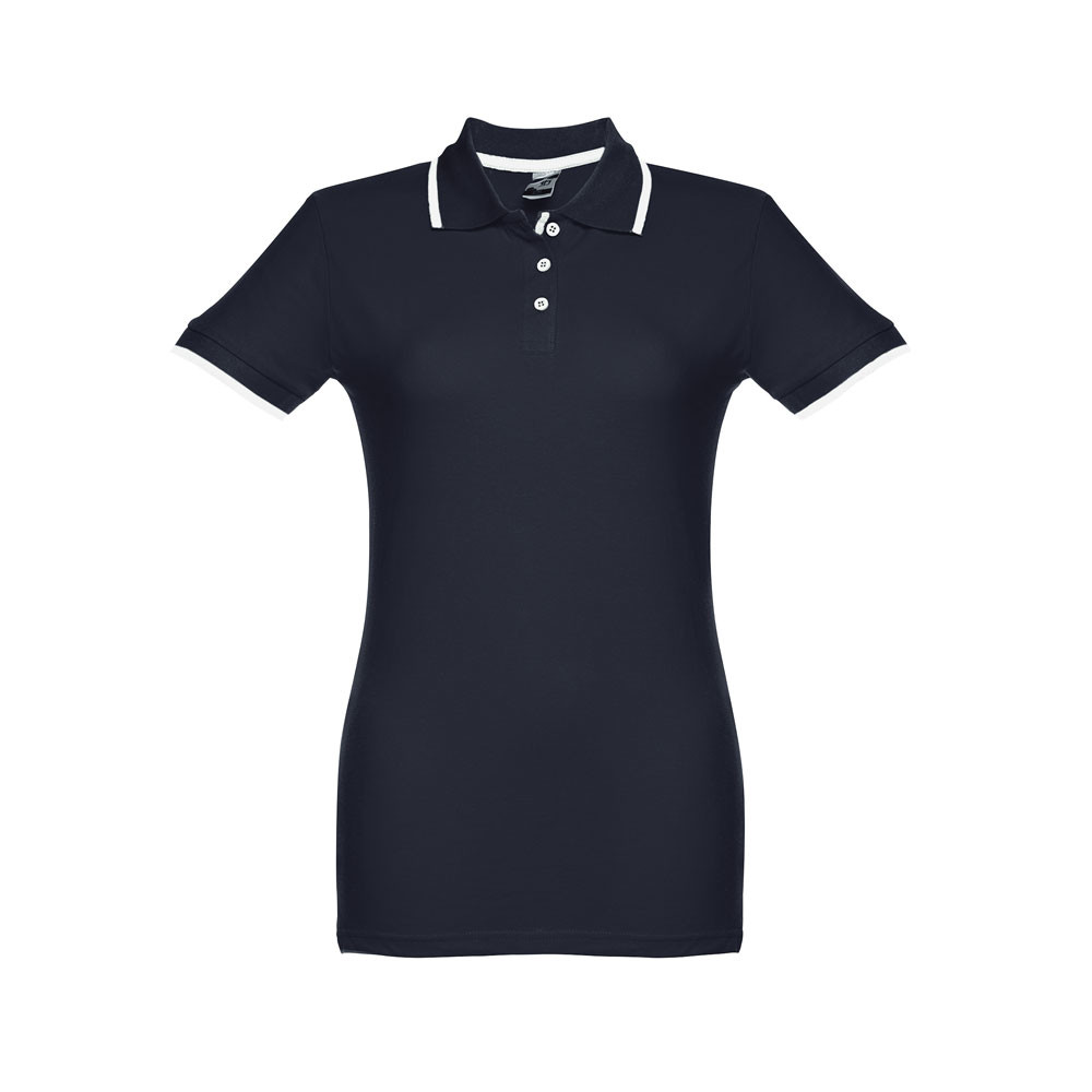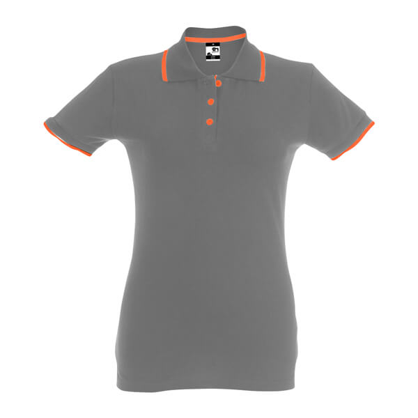Dámska priliehavá polokošeľa zo 100% bavlneného piké (195 g/m²) s bočnými rozparkami. Farba 83: 85% bavlna / 15% viskóza. Krátky rukáv. Rebrovaný golier a rukávy. Dvojfarebný kontrast na golieri, lége a rukávoch. Vystužená léga. Náhradný gombík vo vnútornom šve. Veľkosti: S, M, L, XL, XXL