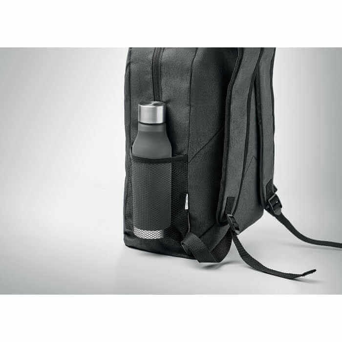 Dvojfarebný batoh z polyesteru 600D RPET s vonkajším vreckom na zips a sieťovaným bočným vreckom. Tento batoh je ideálny na každodenné používanie do školy, do práce alebo na iné aktivity. Sieťované vrecko využijete na uloženie fľaše na pitie a predné vrecko na zips na menšie predmety. Zadné popruhy si môžete nastaviť na pohodlné nosenie. Taška je vyrobená z recyklovaného PET plastu. Hmotnostný limit na prenášanie je 5 kg.