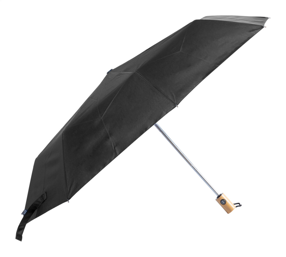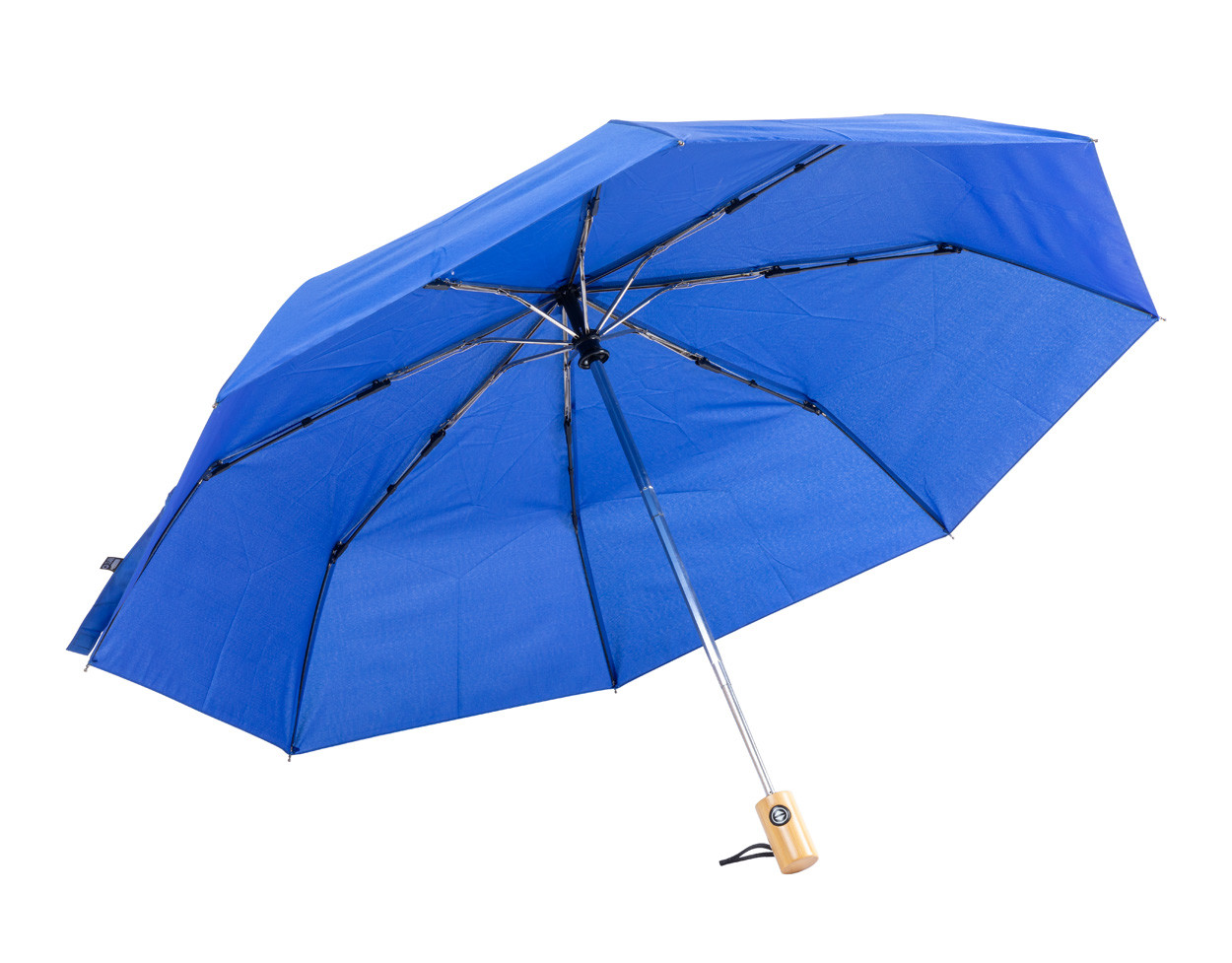 Plne automatický (otvoriť/zavrieť), vetruodolný skladací dáždnik s 8 panelmi v puzdre v zodpovedajúcej farbe. S kovovým rámom a bambusovou rukoväťou. Pongee 190T RPET. S výrazným štítkom RPET.
