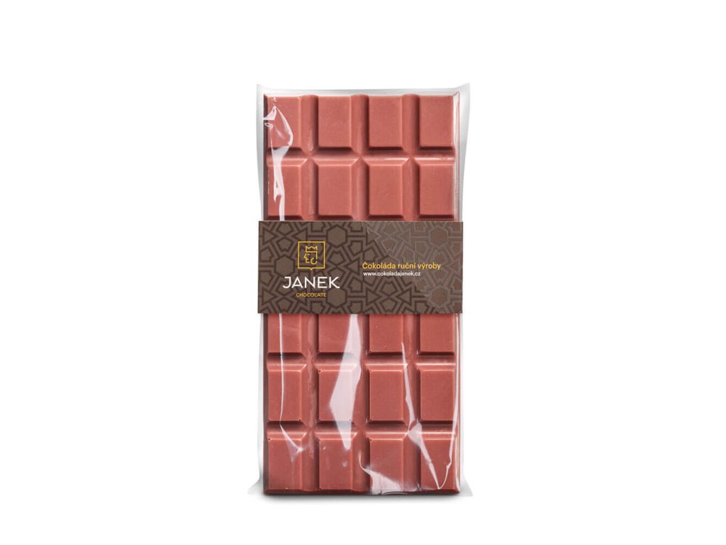 Originálna ruby čokoláda s jemnou vôňou pravej vanilky – bez aróm a esencií, len s pravými vanilkovými zrnkami. Prekvapí vás prírodnou ružovou farbou kakaových bôbov ruby, jedinečnou ovocnou chuťou a čistým zložením bez lepku či palmového oleja. Poctivá česká výroba a chuť, ktorá provokuje i poteší. Zloženie: kakaová hmota 47,3 %, kakaové maslo, sušené odstredené mlieko, sušené plnotučné mlieko, cukor, emulgátor: sójový lecitín, regulátor kyslosti: kyselina citrónová, prírodná vanilková aróma. Váha: 85 g