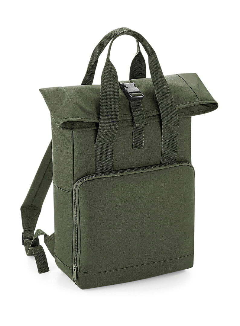 100% polyester (300D) · Tkané rukoväte · Uzatváracie rolky · Čalúnené, nastaviteľné ramenné popruhy · Čalúnená zadná časť · Predné vrecko s priehradkou na náradie · Vnútorné vrecko so zipsom · Ľahko sa dá rebelovať · Kapacita: 14 litrov · Rozmery: 28 x 38 x 12
