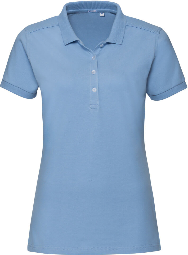 210g / m², 95% piqué bavlna, 5% Lycra® postavu zdôrazňujúci dlhší strih, plochý úpletový golier, léga so 4 gombíky v kontrastných farbách, spevňujúce lemovka, bočné rozparky