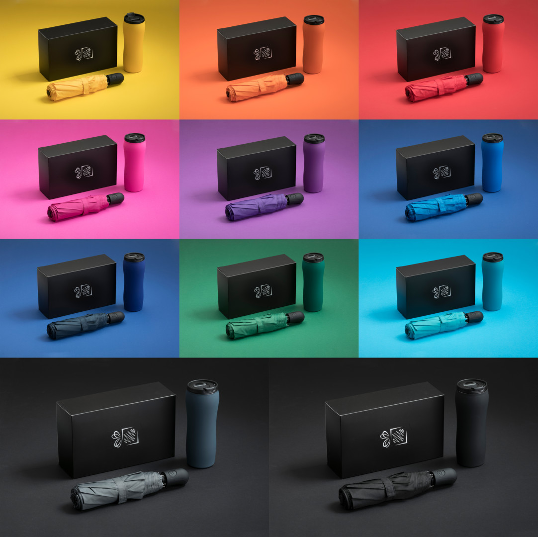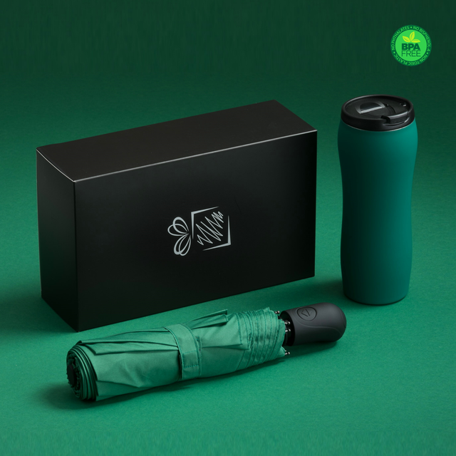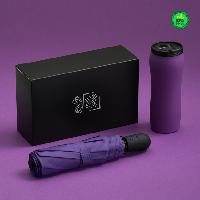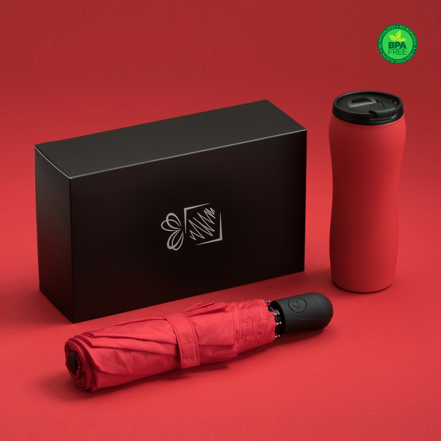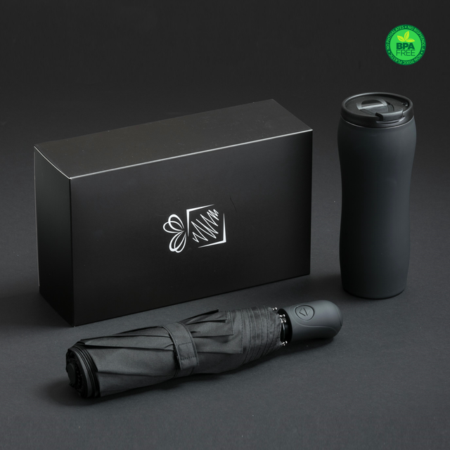Termálny hrnček (450 ml.) s dvojitými stenami dokonale udržuje požadovanú teplotu - až 2 hodiny. Skladací dáždnik Cambridge ponúka dva odolné mechanizmy: protivetrový systém (poskytuje dodatočnú flexibilitu, vďaka čomu sa dáždnik nezlomí ani pri silnom náraze vetra) a mechanizmus DAS (systém automatického otvárania a zatvárania).