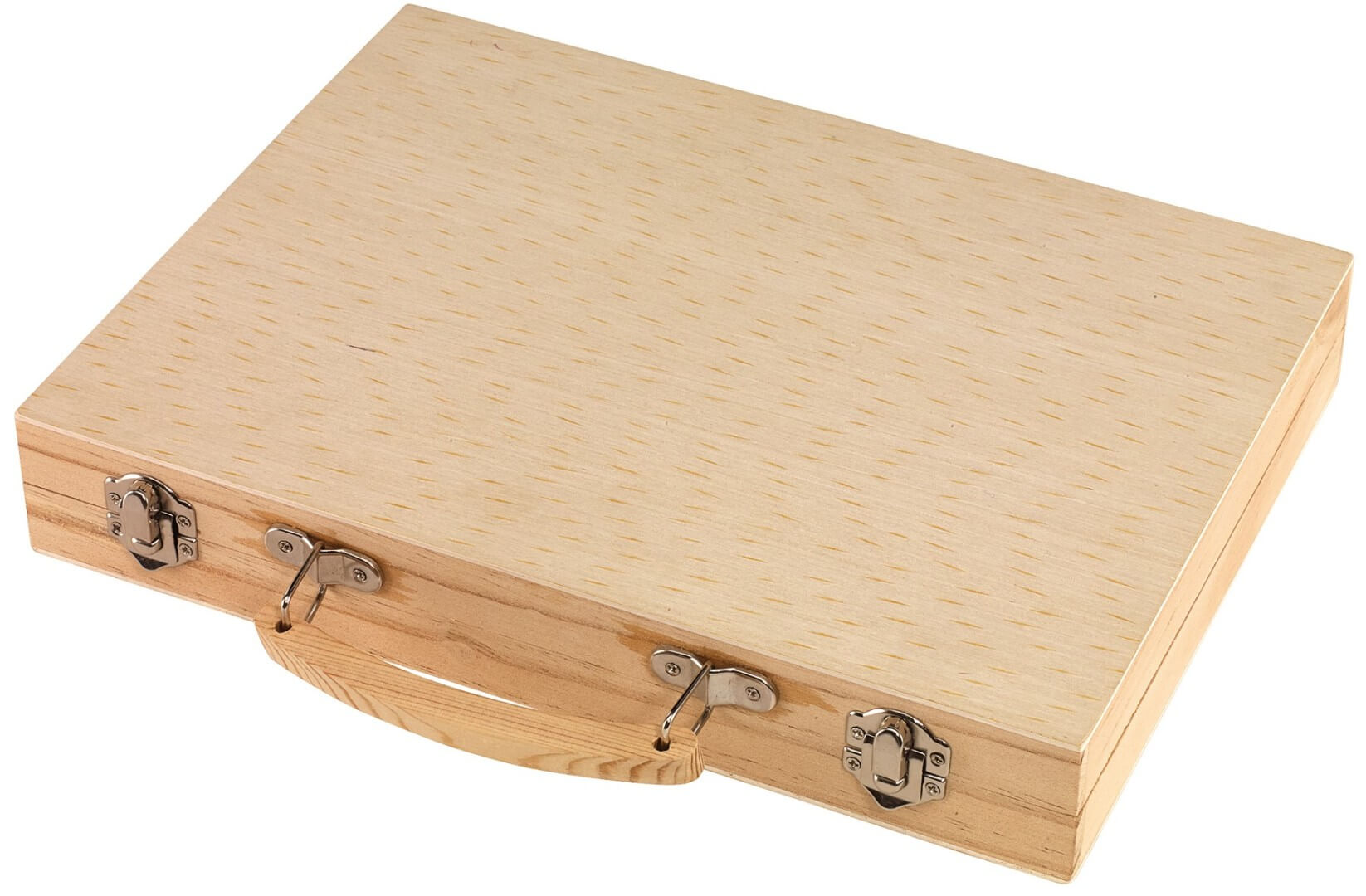 Colouring set GAUDY : 12 farbičiek, 12 fixiek, 12 voskoviek, 12 vodových farieb, 1 štetec, 1 ceruzka, 1 strúhadlo, 1 guma, 1 pravítko (15 cm) a 1 x lepidlo, v drevenej krabičke so zaklapnutím a rukoväťou