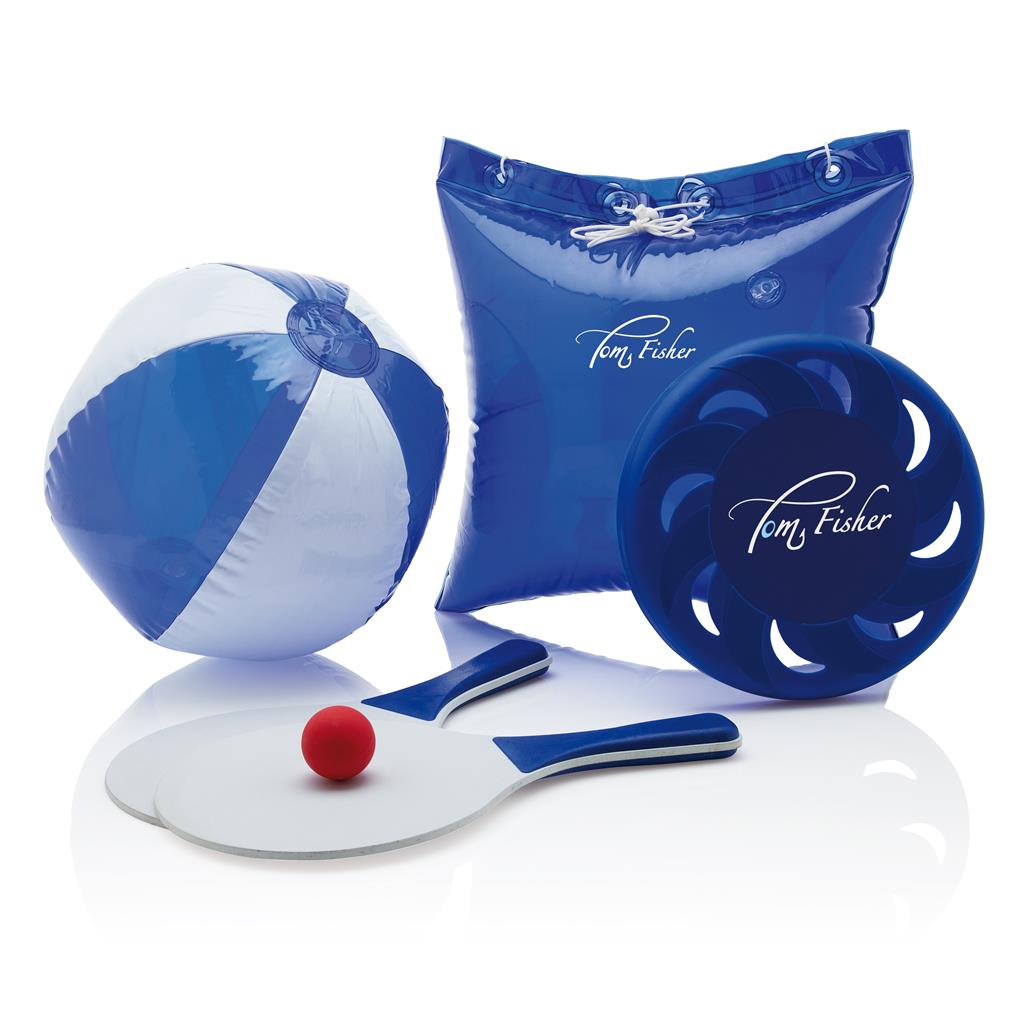 Chvíle na pláži sú neodmysliteľne spojené nie len s opaľovaním, ale aj s aktívnym oddychom a športovými aktivitami. Ideálnym spoločníkom bude preto taška so športovými potrebami, ktoré majú radi všetci. Frisbee tanier, plážové rakety s loptičkou a nafukovacia lopta spríjemnia chvíle na pláži. Pripomeňte sa svojim klientom, biznis partnerom, či zamestnancom aj počas dovolenky vďaka predmetom, ktoré sú ideálnym reklamným nosičom.