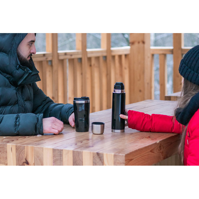 Naše viečka sú vyrobené z 50 % z recyklovaného plastu a naše poháre sú vyrobené z 90 % z recyklovanej nehrdzavejúcej ocele, ktorá pochádza zo zodpovedných zdrojov a spĺňa etické normy.
