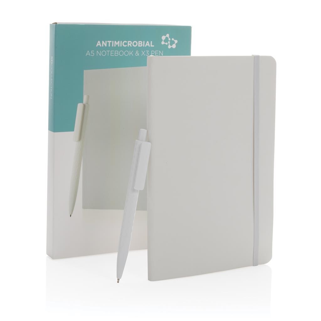 Sada zápisníka A5 a ikonického pera X3. Sada je kompletne ošetrená špeciálnou antimikrobiálnou ochranou Biomaster. Tá je oproti štandardným ochranám obsiahnutá priamo vo výrobku, miesto na výrobku a tým zaisťuje trvalú ochranu. Výrobok bol testovaný v súlade s ISO 22197 (antimikrobiálna efektivita), je 100% bezpečný pre užívateľov a neznižuje možnosť recyklácie. Navyše obsahuje vystopovateľnú zložku Verimaster, pomocou ktorej je možné Biomaster ošetrenie garantovať. Zápisník s mäkkou väzbou z PU obsahuje 72 listov / 144 strán krémového linkovaného papiera o gramáži 70g / m2. Pero s nemeckým modrým atramentom Dokumental® pre písanie až 1 200m textu. TC gulička pre mimoriadne príjemné písanie. Balené v luxusnej darčekovej krabičke.