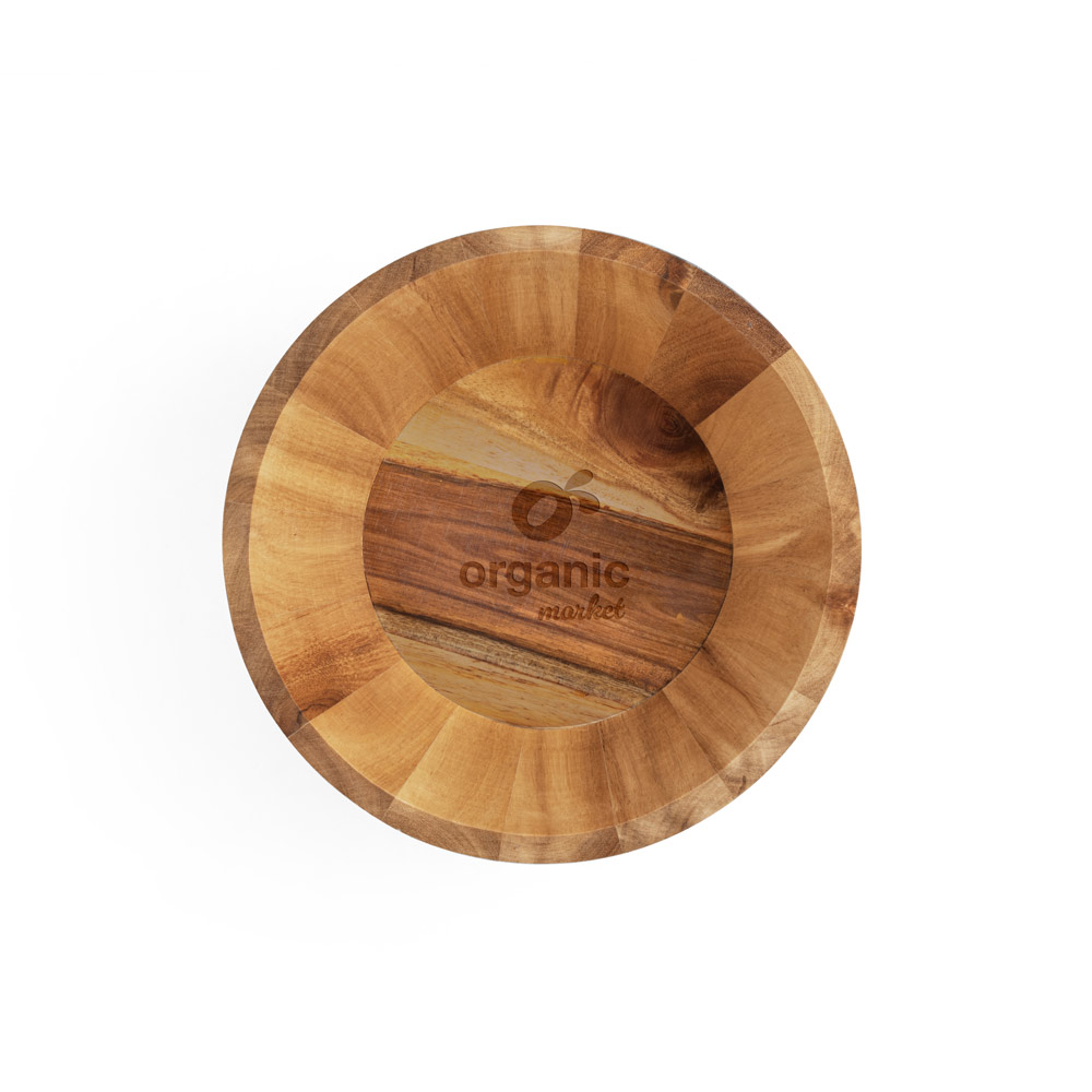 Okrúhla miska na šalát z akáciového dreva, z materiálu certifikovaného FSC™ a iných kontrolovaných materiálov. Dodáva sa v kraft papierovom obale prevedení. Ø230 x 90 mm