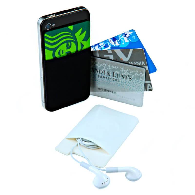 Samolepiace textilné vrecko je novým a veľmi praktickým doplnkom k mobilu, alebo tabletu. Vďaka kvalitnej 3M samolepiacej vrstve skvele drží na zadnej strane mobilu, tabletu, apod. Veľký priestor na potlač (razba do hornej časti, alebo transfer printing na textilnú časť, prípadne kombinácia). Elastické vrecko z lycry v klasickom "kreditkovom rozmere" sa dobre hodí najmä pre kreditné či iné karty, preukazy, vizitky, slúchadlá, mince, bankovky, kľúče, napájacie káble, malé power banky, apod. Vďaka malým rozmerom a nízkej cene sa jedná o ideálny rozdávací / príbalový predmet s veľkým reklamným dosahom. Kapsička nenecháva na povrchu žiadne stopy. 21 farieb.