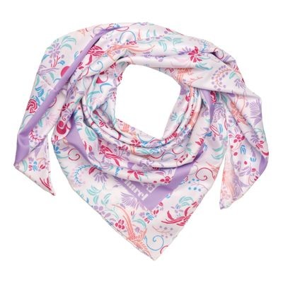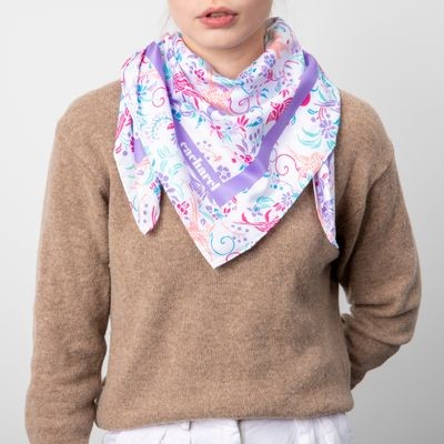Šatka "Alma" je potlačená sviežimi a romantickými kvetmi a vtákmi inšpirovanými slobodou, s jasnými a poetickými tónmi. Táto šatka je vyrobená z vegánskeho hodvábu (polyesterový kepr). Jeho veľkosť 90 X 90 cm z neho robí veľmi všestranný doplnok, ktorý možno nosiť na stovky rôznych spôsobov.