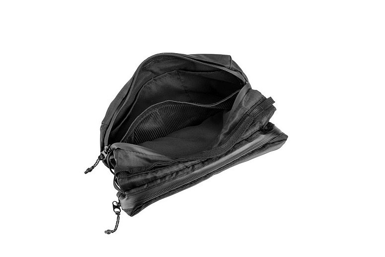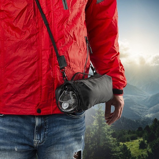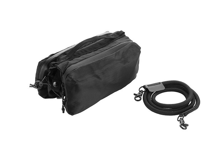 Príručná taška cez rameno značky Schwarzwolf s priestorom na fľašu s pitím alebo dáždnik. Taštička obsahuje dve hlavné vrecká na zips. V jednom vrecku sa nachádzajú dve vrecká na kreditné karty a jedno sieťované vrecko, v druhom vrecku dve vrecká na slúchadlá a ďalšie drobnosti a jedno vrecko s karabínkou. Stredová oblasť medzi hlavnými vreckami obsahuje pevnú gumu, do ktorej je možné umiestniť fľašu s pitím alebo dáždnik. Šnúrku od tašky je možné použiť aj ako šnúrku na telefón. Balené v papierovom rukáve.