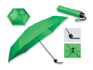 Skladací polyesterový dáždnik s manuálnym otváraním a plastovou rukoväťou a obalom, 6 panelov, zložený ø 4,7x23,5 cm.