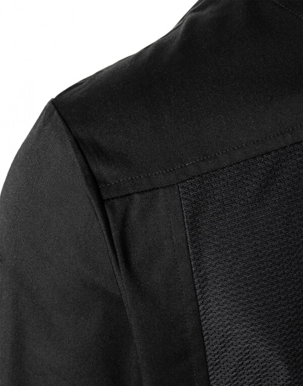 ·200 g/m² ·predná časť: 65% polyester, 35% bavlna (twill) ·zadná časť: 100% polyester (Jersey) ·moderná košeľa s krátkym rukávom pre ľahké zasunutie ·priedušná a vlhkosť regulujúca zadná časť ·skrytý gombík ·rozopnutie gombíka zväčší obvod košele ·náprsné vrecko na ľavej strane ·vrecko na ľavom rkávu ·možno prať do 60 °C ·rovný strih