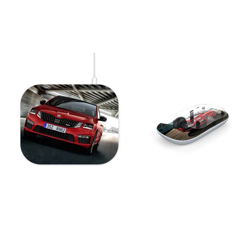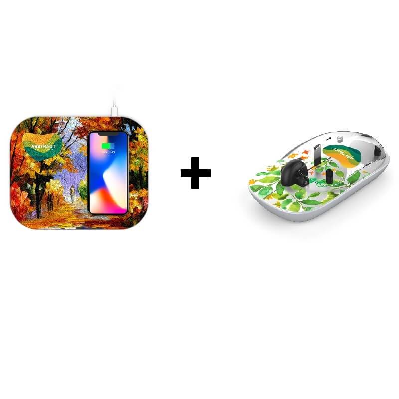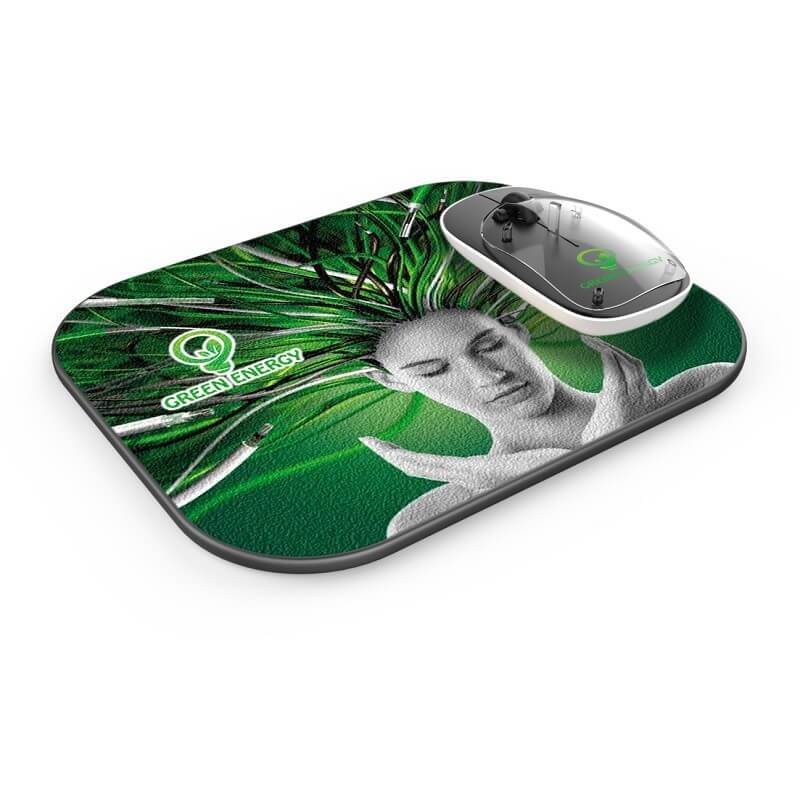 V štýlovo vybavenej modernej kancelárii by určite nemal chýbať set bezdrôtovej myši s podložkou pre bezdrôtové nabíjanie. Praktická bezdrôtová myš v elegantnom dizajne spolu s podložkou perfektne zapadne na každý stôl. Výhodou je minimum káblov a originálny vzhľad vytvorený na mieru. Na podložke podporujúcej indukčnú technológiu sa okrem samotnej myši môže nabíjať aj mobilný telefón s podporou Qi nabíjania a pod., takže vyriešite dva problémy naraz. Podložka je rýchlonabíjacia a sama zvolí maximálnu rýchlosť nabíjania 5 W, 7,5 W alebo 10 W - podľa vlastností vášho telefónu. Podložku aj myš je možné opatriť farebnou CMYK potlačou podľa vlastného priania a vytvoriť tak výnimočne pôsobivú a praktickú sadu vhodnú na každý stôl.