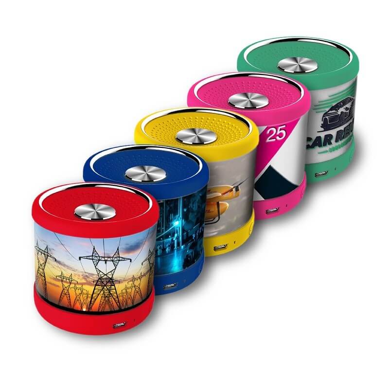 Využite funkciu TWS naplno so setom 2 kusov Bluetooth reproduktorov a zažite počúvanie hudby v naozajstnej stereo kvalite. V rámci setu získate ideálnu techniku pre počúvanie skutočnej stereo hudby, pretože vďaka funkcii TWS sa oba reproduktory spoja a budú hrať synchronizovane do dvoch kanálov, aby zvuk znel naozaj stereo. Tvar skladného valčeka, štandardne dodávaný v praktickej uzatvárateľnej krabičke, je navyše vhodný aj na cestovanie. Pripojenie k mobilnému zariadeniu prebieha s pomocou technológie Bluetooth 4.0 s dosahom až do 10 metrov. Reproduktory vám vyrobíme úplne vo vlastných Pantone farbách a je možné ich doplniť farebnou CMYK potlačou podľa vlastného priania, vrátane reliéfneho loga.