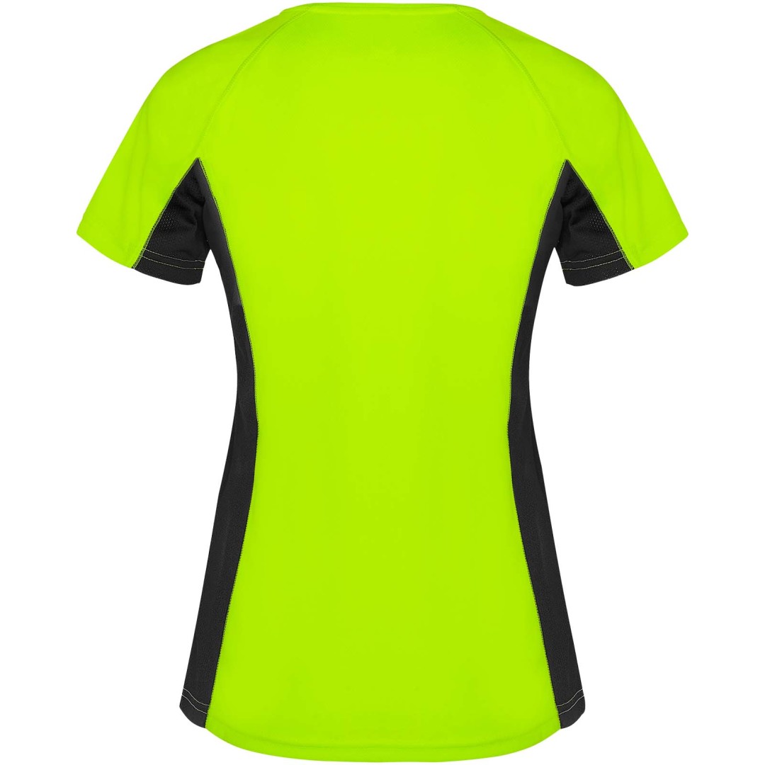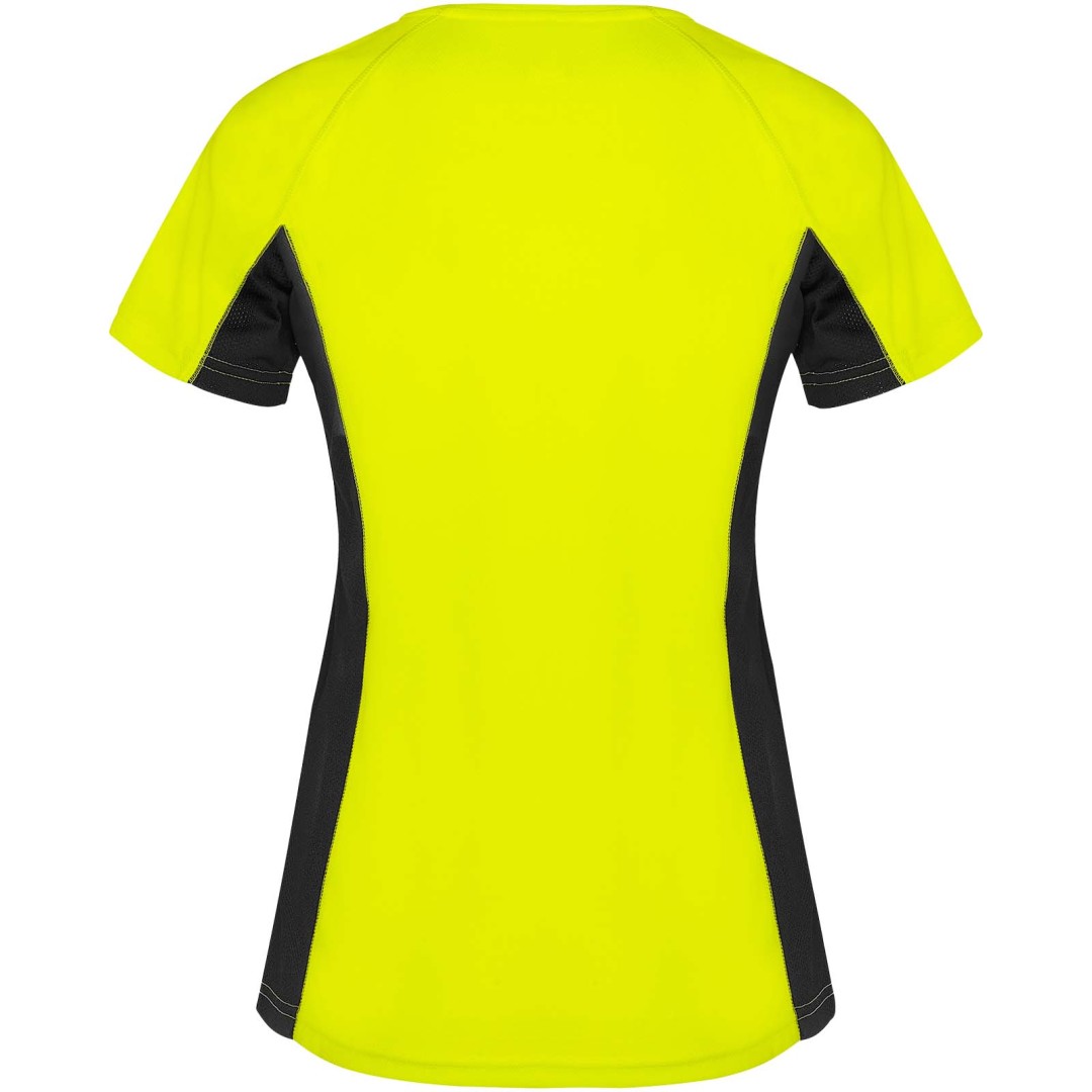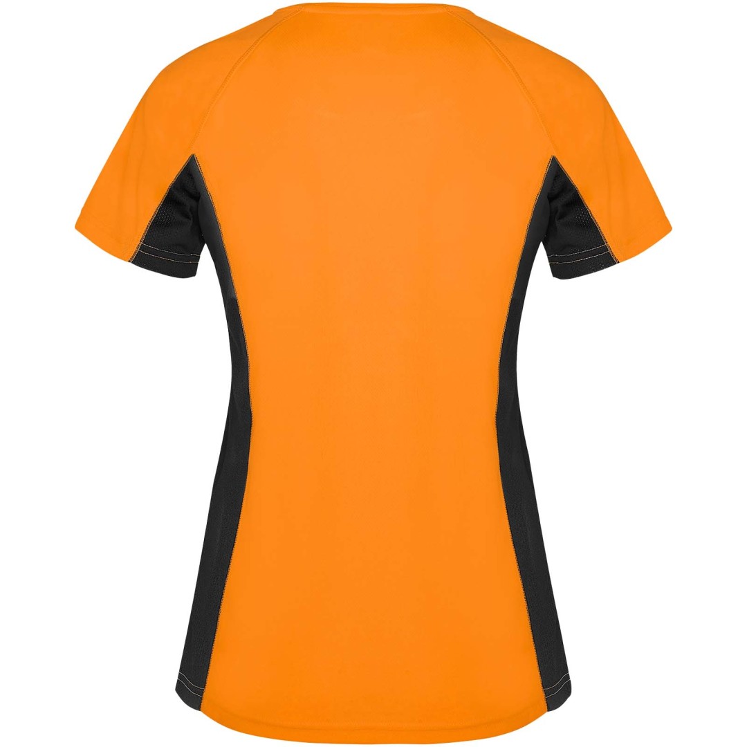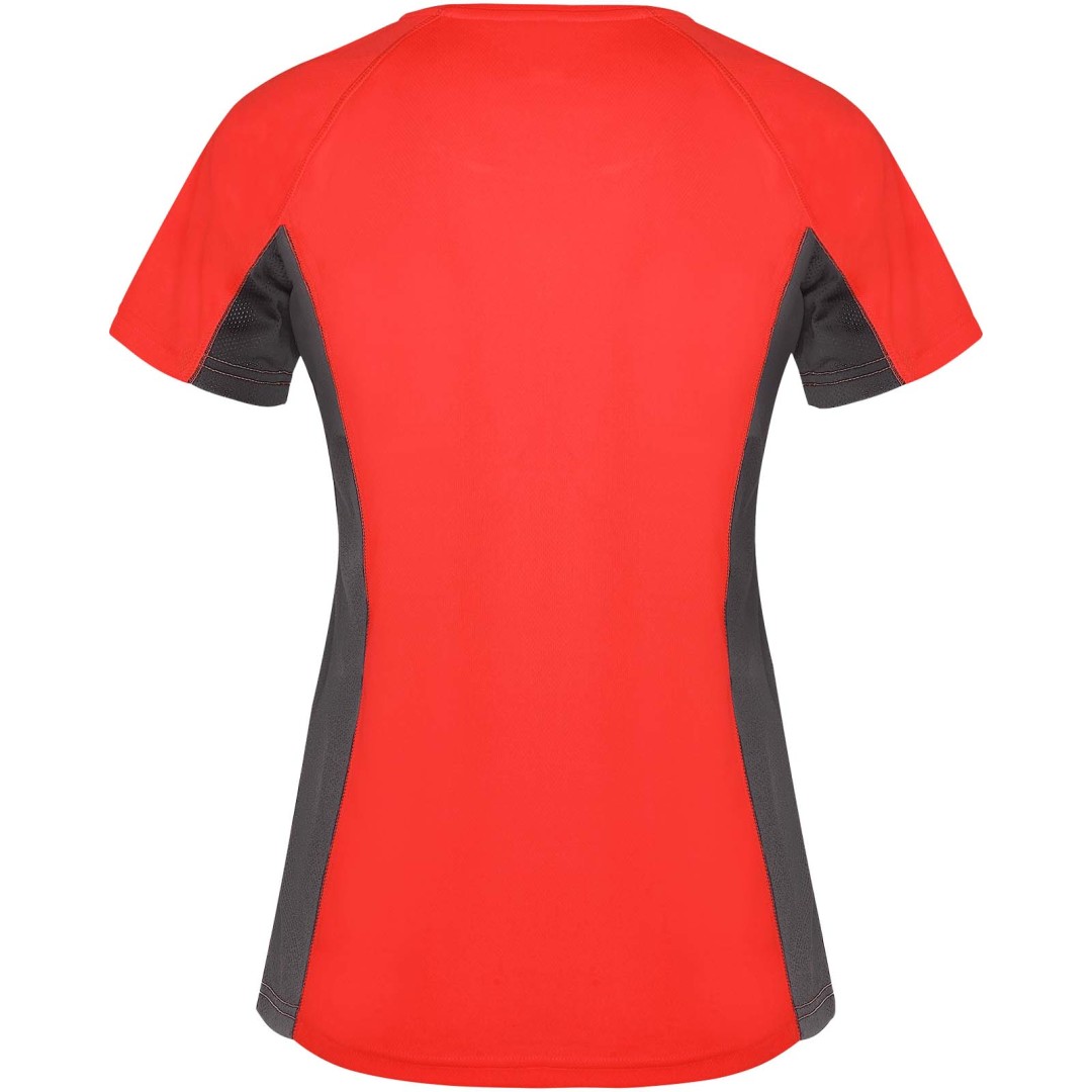 Technická a priedušná látka. Kombinácia dvoch polyesterových látok: Hlavná látka „vtáčie oko“, bočné panely a vnútorný rukáv z mikroperforovanej látky. Okrúhly výstrih s vnútornými zosilnenými krytými švami. Odnímateľný štítok.