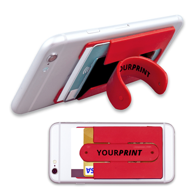 Dvojfunkčný silikónový stojan na telefón a peňaženka, do ktorej bezpečne vojdu 2-3 karty. Rozmer 95x57x4mm. Každá položka je zabalená v samostatnom vrecku OPP. 1 farebná potlač na 1 pozícii je zahrnutá v cene. Potlač viacerými farbami za príplatok.