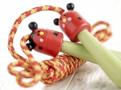 Švihadlo so zvieracími vzormi na drevených rukovätiach.