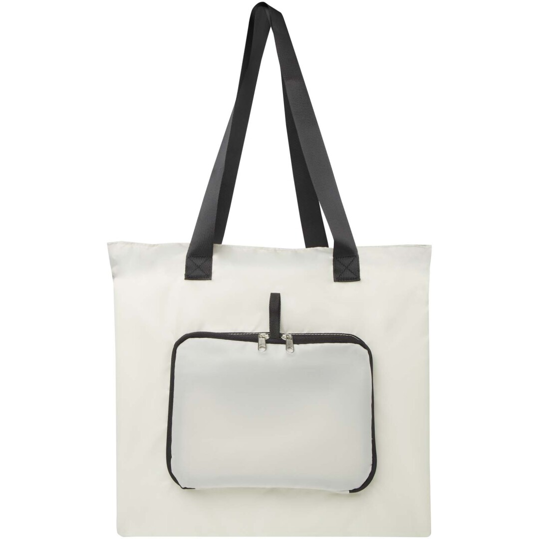 Táto ľahká, ale odolná taška, navrhnutá s ohľadom na pohodlie a funkčnosť, sa prispôsobí vašim potrebám tým, že ju úhľadne zložíte do kompaktného puzdra s pútkom na popruh a môžete ju ľahko zavesiť alebo prenášať. dve dlhé uši z kvalitného hladkého popruhového materiálu. Je vyrobený z recyklovaného polyesteru bez obsahu PVC.