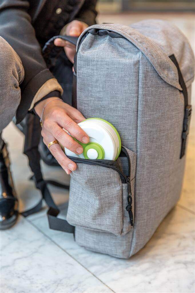 Prenosný skladací hrnček vyrobený z potravinárskeho silikónu, ktorý nelepí, je ohybný a ľahko sa umýva. Vďaka svojej skladnosti šetrí miesto a je tak ideálny na cesty. Bez BPA, vhodný do umývačky. Pred prvým použitím prepláchnite vriacou vodou. Nepriepustný. Objem 350 ml ..