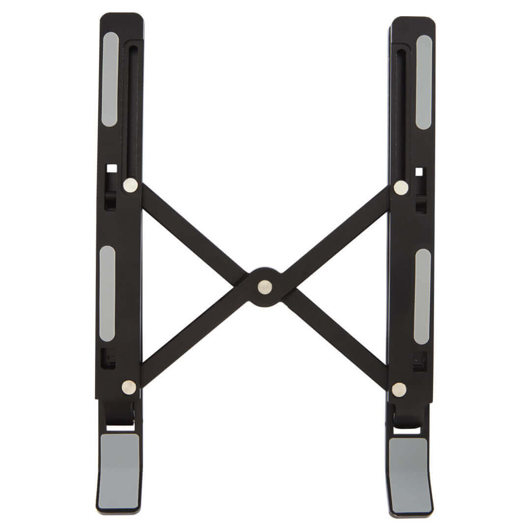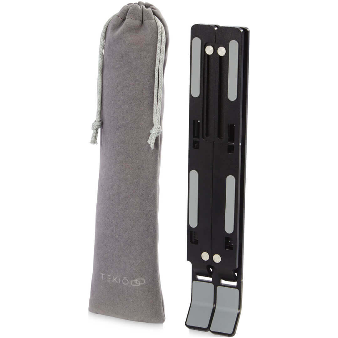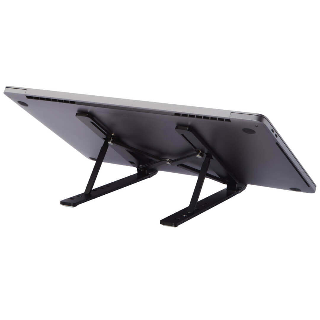 Univerzálny, kompaktný a skladací stojan na notebook vyrobený zo zliatiny hliníka. Stojan je možné nastaviť do 7 rôznych uhlov pre optimálne ergonomické držanie tela. Skladanie a rozkladanie stojana je veľmi jednoduché a dá sa to urobiť v priebehu niekoľkých sekúnd. V spodnej časti sú gumové pásiky, ktoré zabraňujú jeho pohybu. Súčasťou balenia je puzdro na jednoduché prenášanie. Dodávané v prémiovej krabičke z kraftového papiera s farebnou samolepkou.