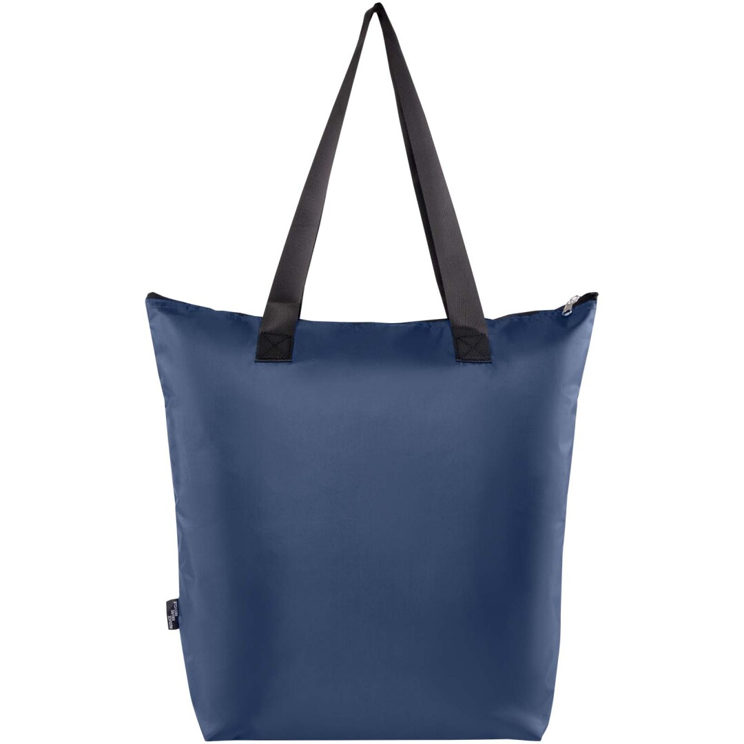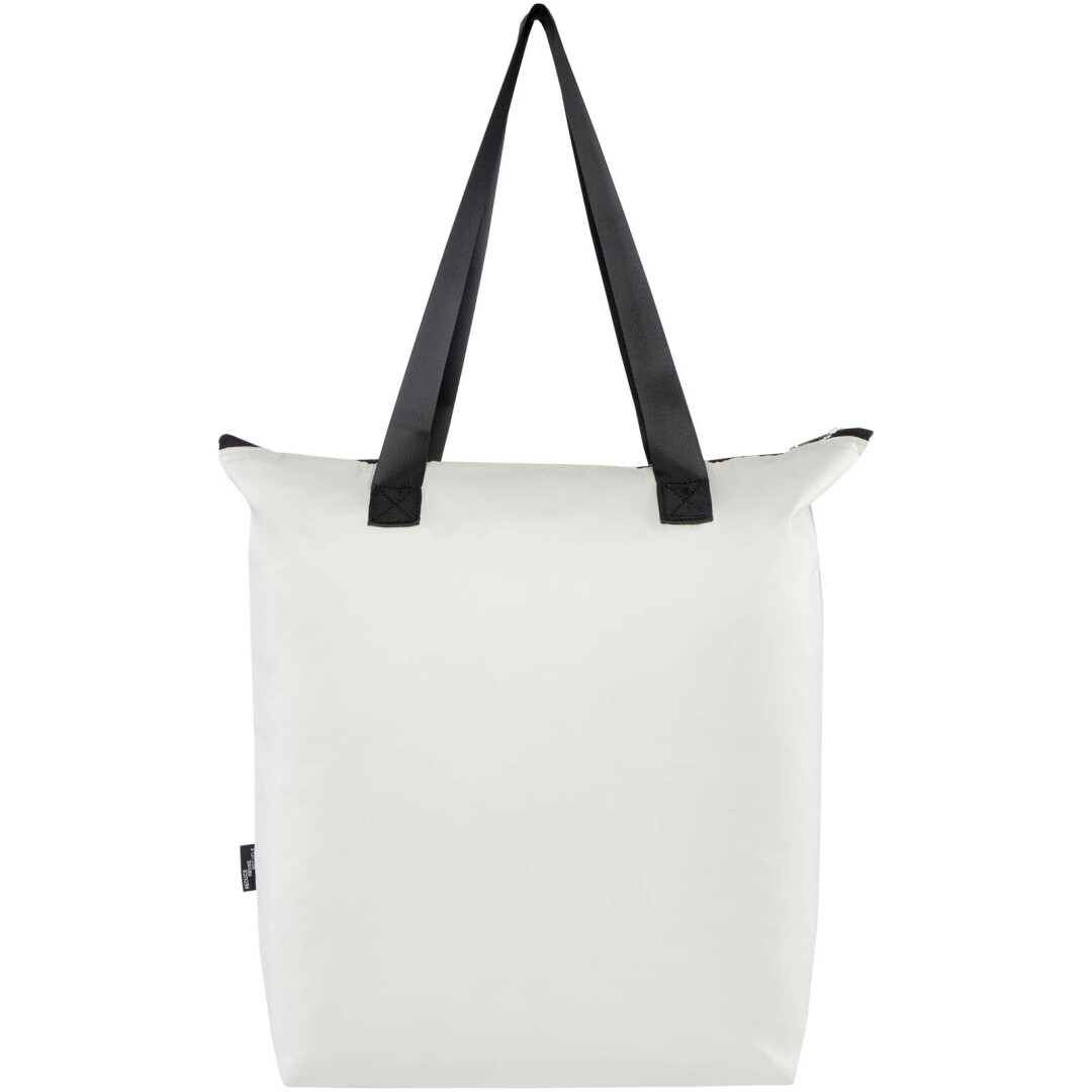 Táto ľahká, ale odolná chladiaca taška, navrhnutá s ohľadom na pohodlie a funkčnosť, sa prispôsobí vašim potrebám tým, že ju úhľadne zložíte do kompaktného puzdra s pútkom na popruh a môžete ju ľahkú zavesiť alebo prenášať. Je tak ideálny na pikniky, nákupy potravín alebo dobrodružstvo v prírode. Má hlavnú priehradku na zips s hliníkovou fóliou, predné otvorené vrecko a dve dlhé uši z kvalitného hladkého popruhového materiálu. Je vyrobený z recyklovaného polyesteru bez obsahu PVC. Objemová kapacita: 15 litrov.
