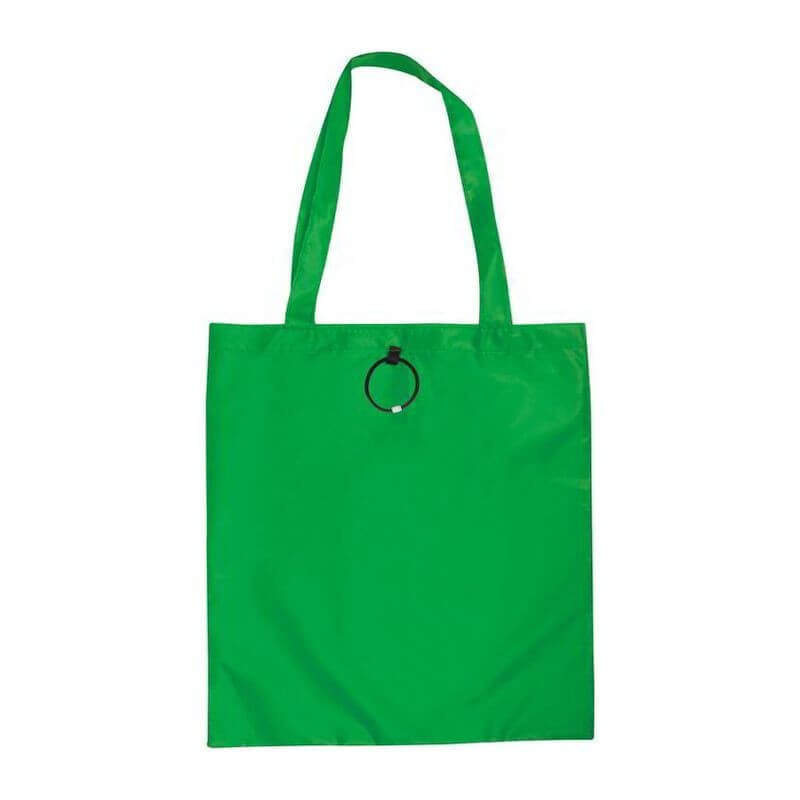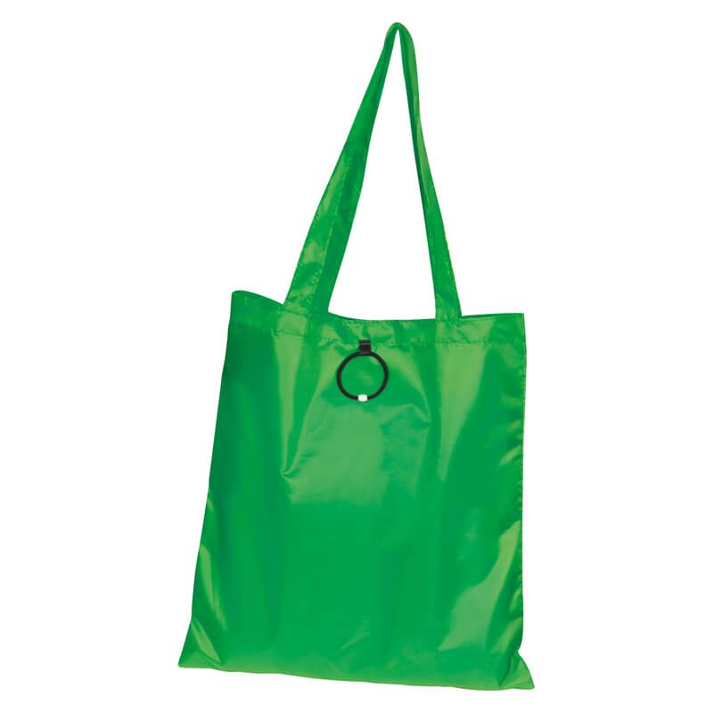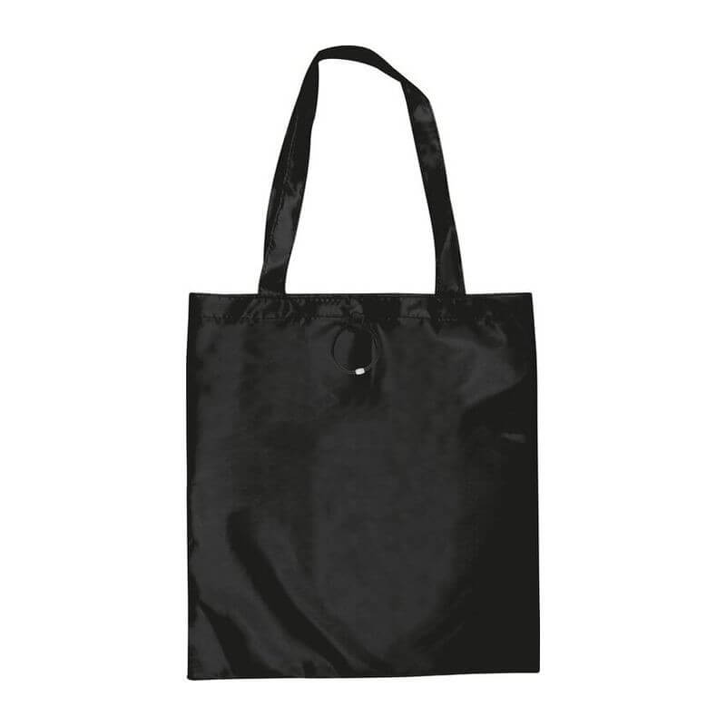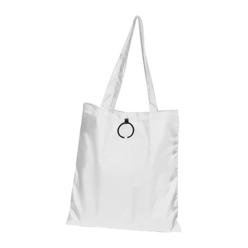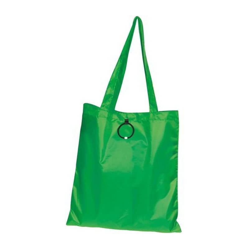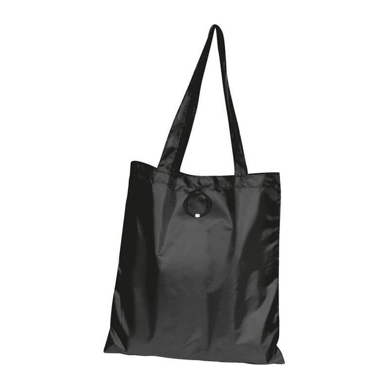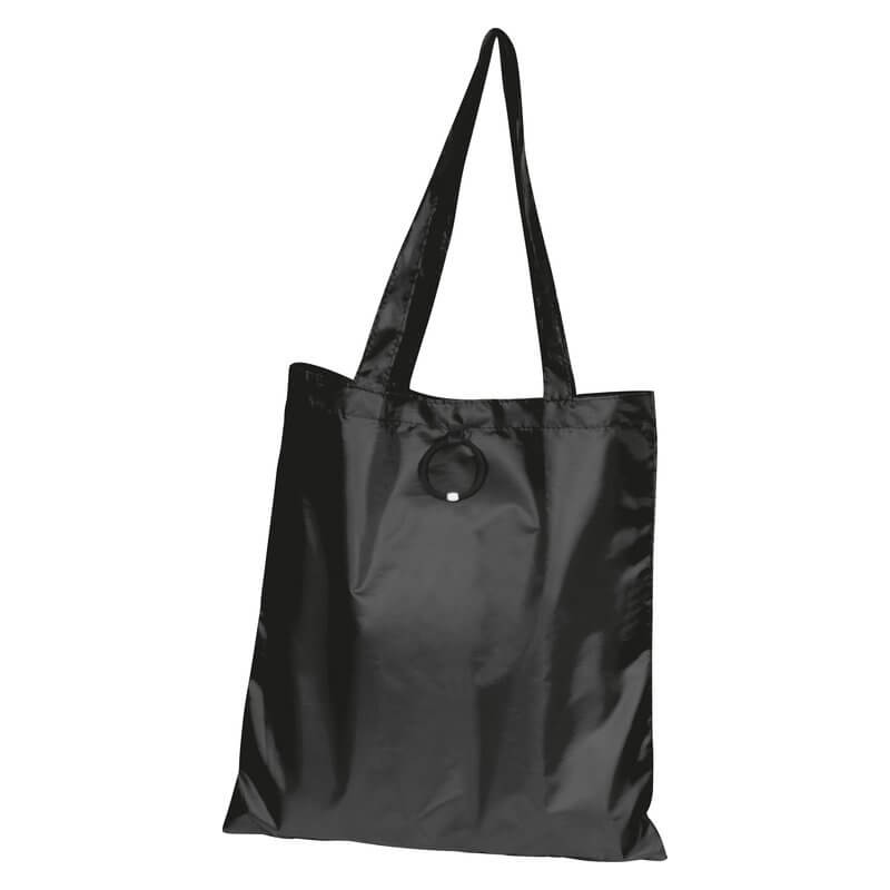 Skladacia nákupná taška vyrobená zo 190T polyesteru s dlhým ramenným popruhom a s gumeným pútkom na poskladanie. Dodávajú sa v otvorenom stave. Spôsob potlače sieťotlač.