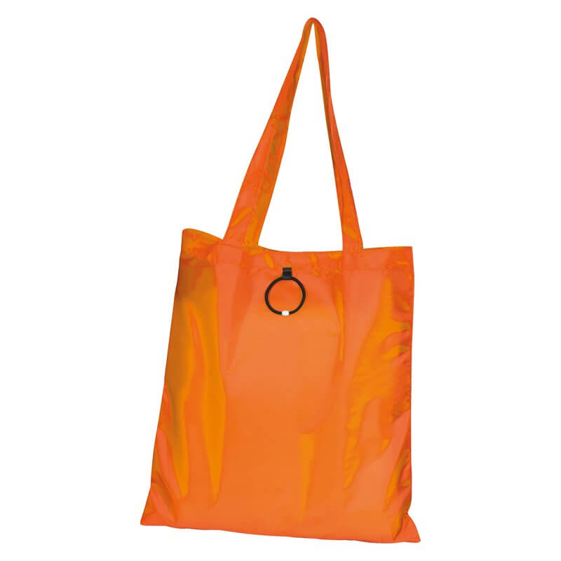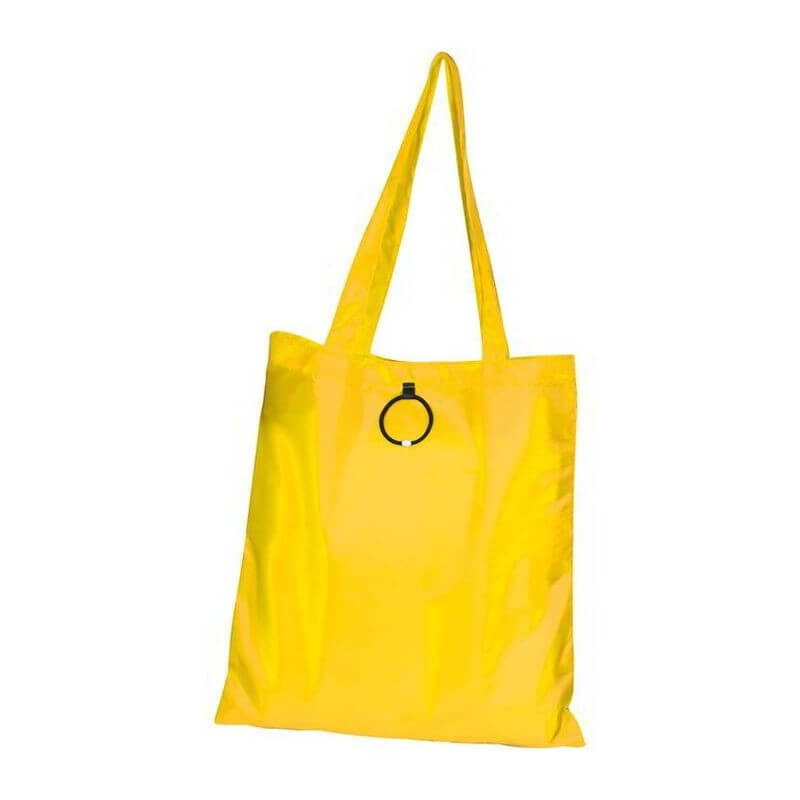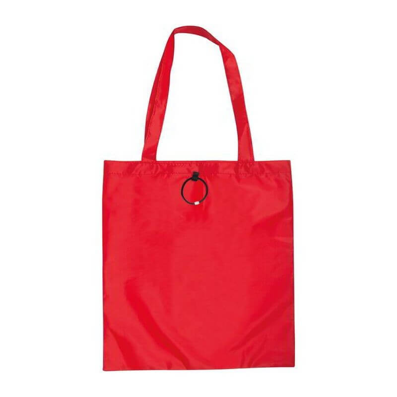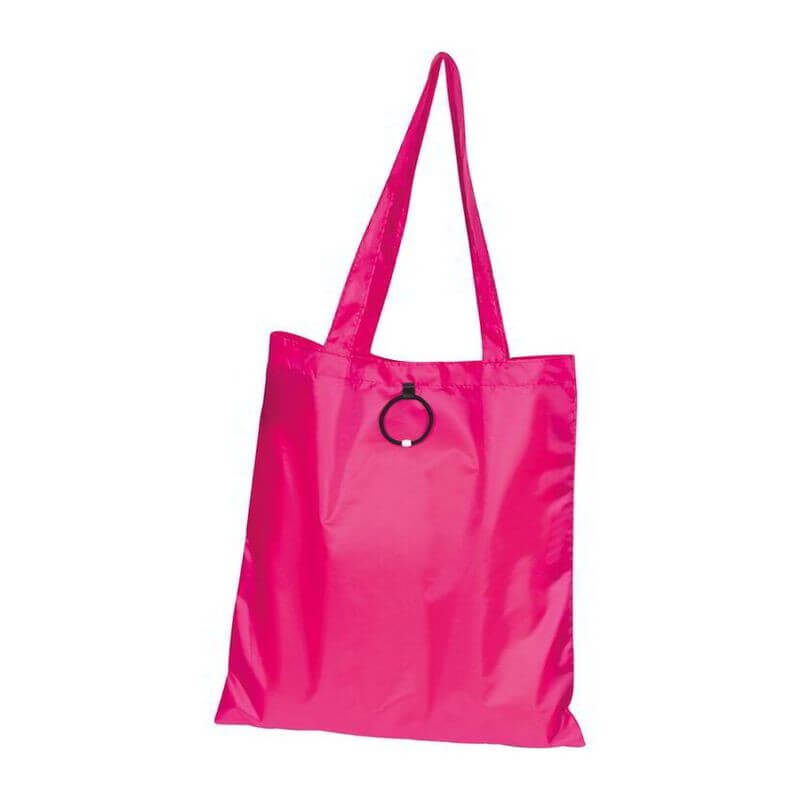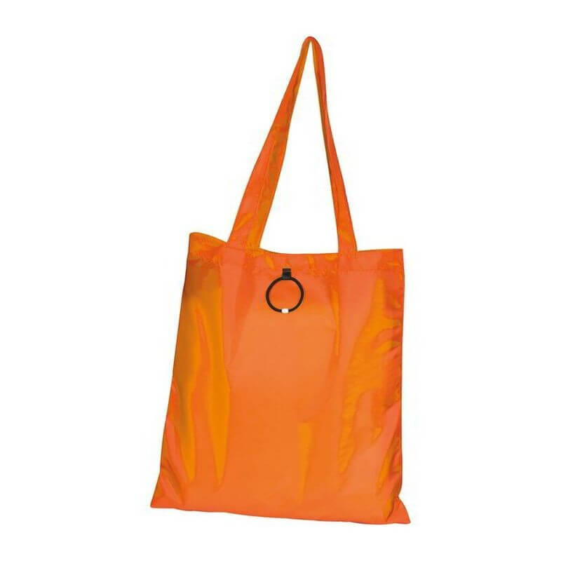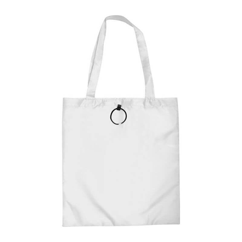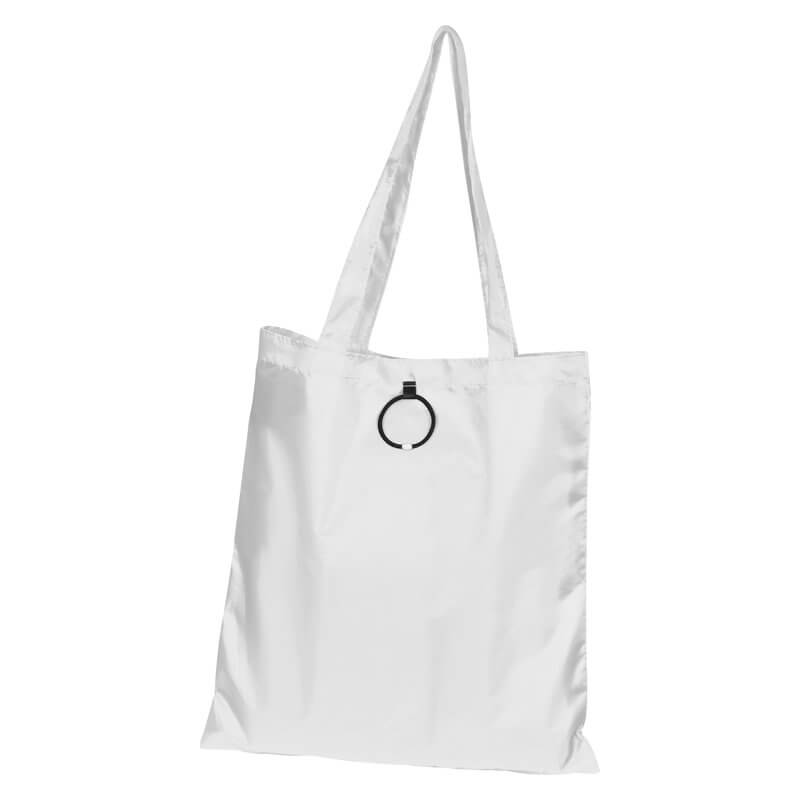 Skladacia nákupná taška vyrobená zo 190T polyesteru s dlhým ramenným popruhom a s gumeným pútkom na poskladanie. Dodávajú sa v otvorenom stave. Spôsob potlače sieťotlač.