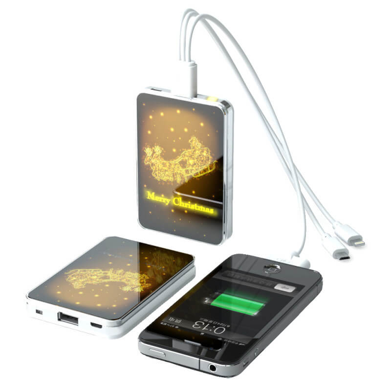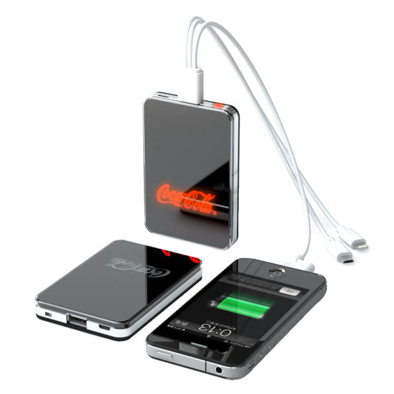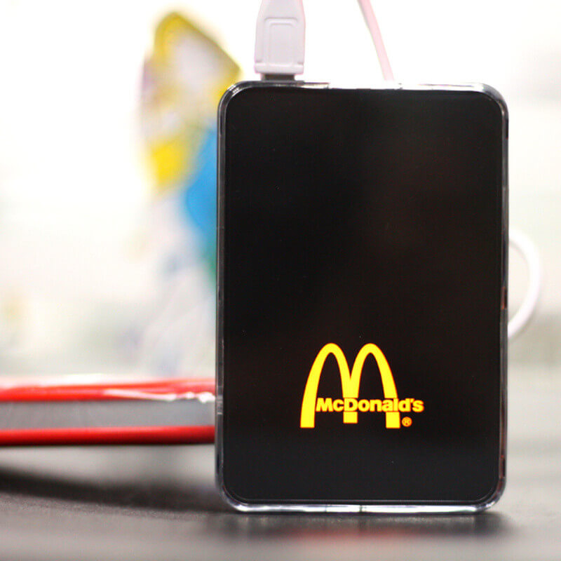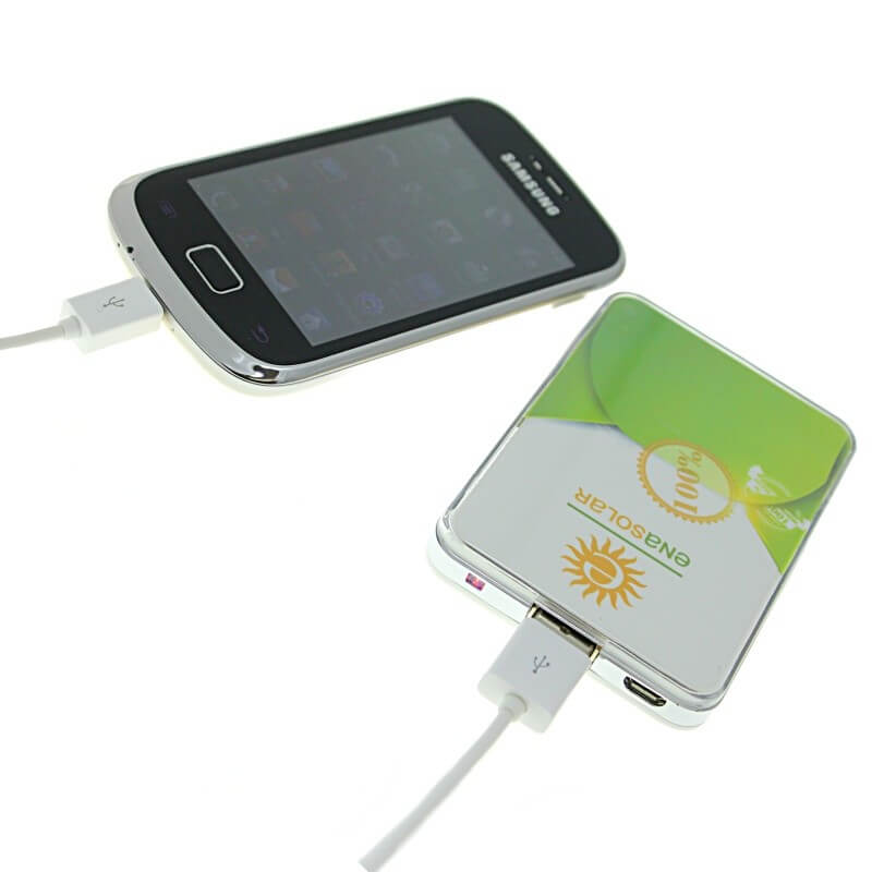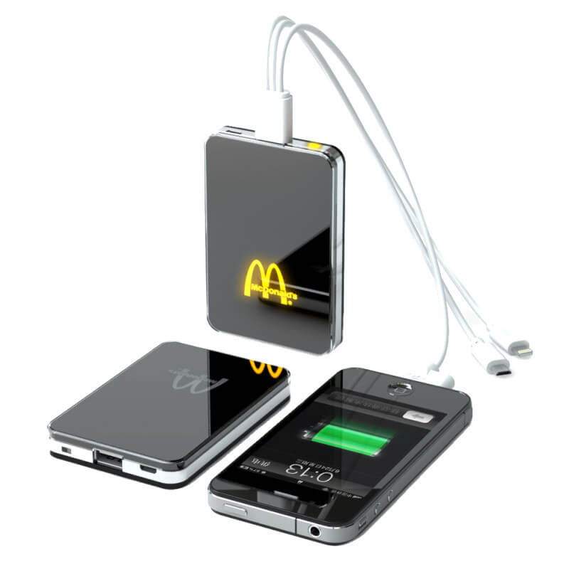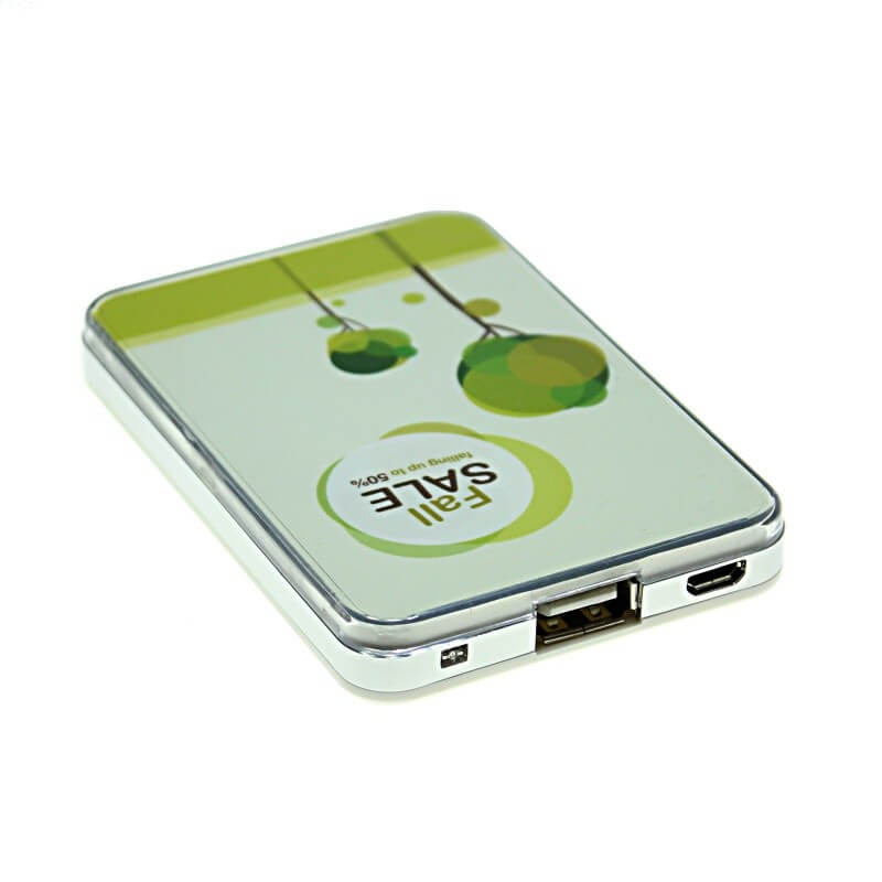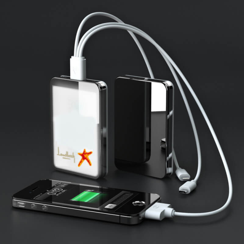 Jedinečný model s mnohými variantmi aplikácie firemného loga! Logo môže byť v klasických priamych farbách, môže byť plnofarebná (CMYK) potlač, alebo LED vysvietené logo v niekoľkých farbách. Prípadne kombinácia viacerých možností - najobľúbenejšia je kombinácia CMYK celoplošnej potlače s LED logom. Možno vyberať z troch dostupných kapacít. Nabite Power Bank cez USB konektor počítača (prípadne sieťový adaptér) a cez micro USB, popr. iný konektor následne nabijete Váš mobilný telefón alebo iné zariadenie. Plne nabitá Power Banka zaistí 2 - 5 nabití mobilného telefónu, podľa kapacity batérie. Nabíja iPhone, tablet, mobily, MP3, kamery a pod.