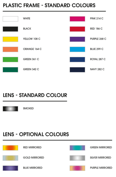 Vytvorte si svoj obľúbený dizajn slnečných okuliarov s množstvom možností. Rám, šošovky aj bočnice podľa vašich predstáv. Okuliare sú potlačiteľné logom na jednotlivých častiach alebo si nechajte vonkajšiu stranu vytlačiť svojim dizajnom od okraja po okraj (plnofarebne). Slnečné okuliare sú jednotlivo balené v papierovom vrecúšku. Môžete si však zvoliť RPET vrecúško (9x17cm), ktoré je možné celé potlačiť.