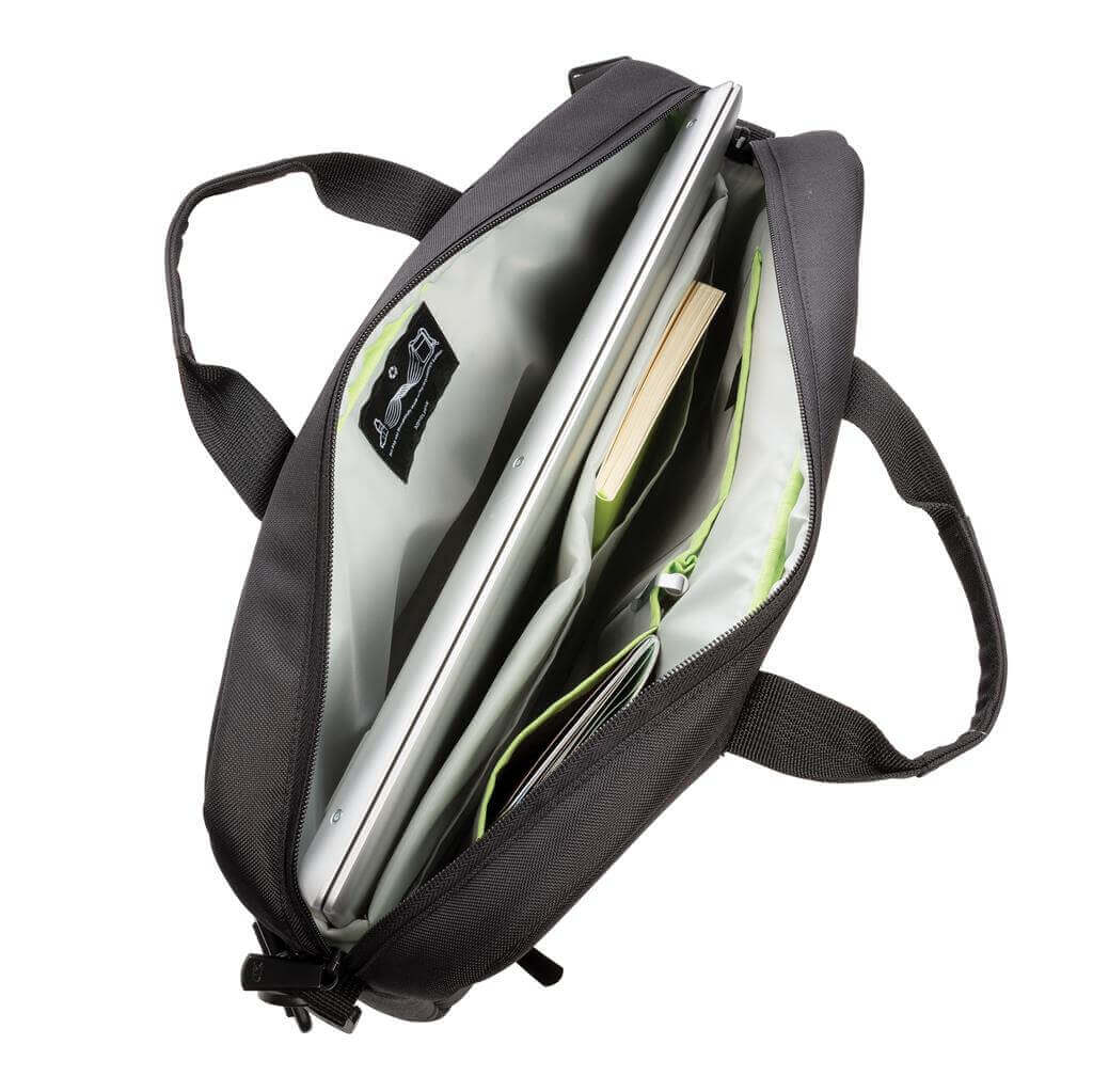 Moderná taška na notebook s minimálnou uhlíkovou stopou vďaka využitiu recyklovaných PET ako hlavného materiálu pri výrobe. Priestor pre prenos až 15,6 "notebooku, predné vrecko na zips pre rýchly prístup. PVC free. Ochranný vzor®